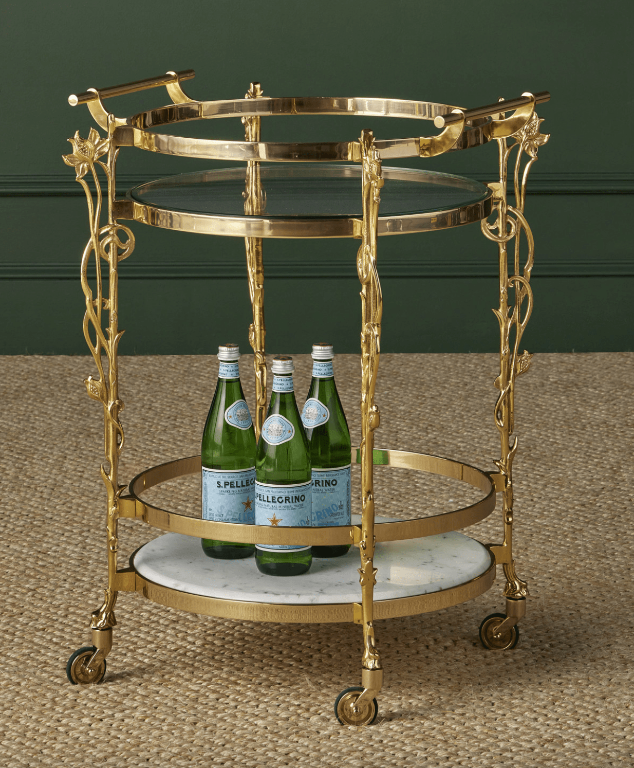 Living Room or Dining Room: Transform a bar cart into a stylish drink station, complete with your favorite spirits, glassware, and cocktail accessories.