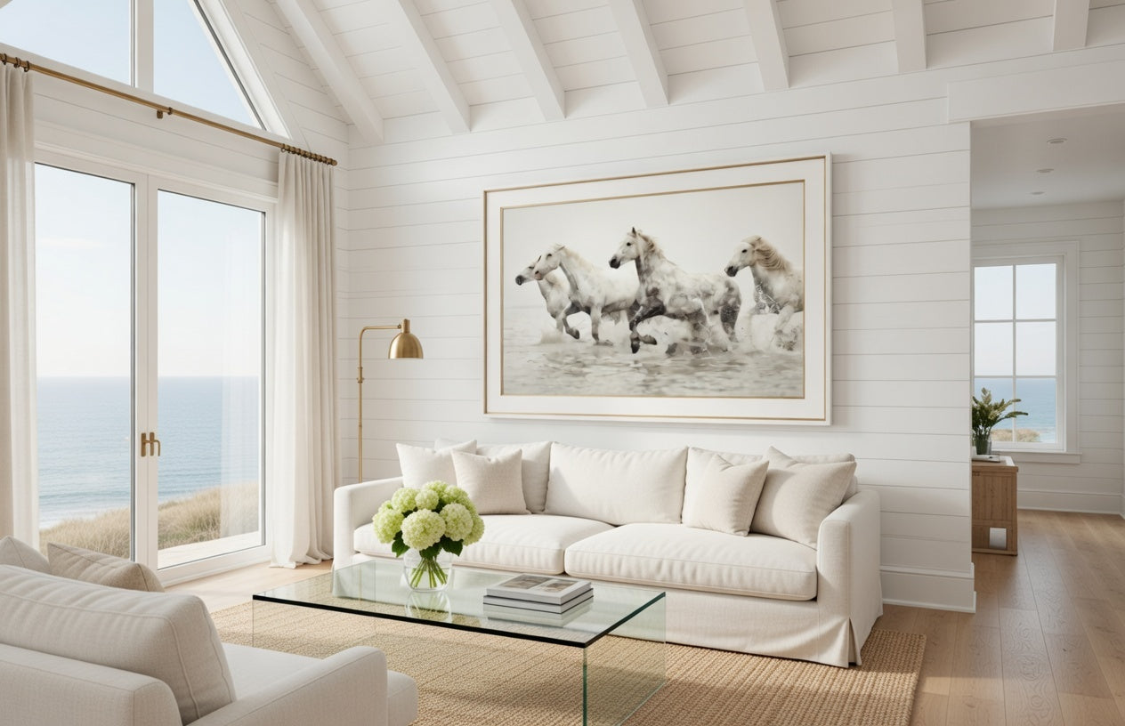 This season favors restraint over kitsch when it comes to coastal décor. Abstract wave sketches, neutral-toned seascapes, and nature photography create a soothing atmosphere without shouting “beach house.”