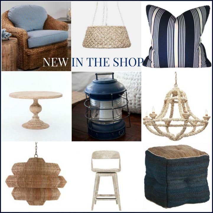 New navy and natural beach house decor at Our Boat House. Natural coastal beach house decor and furnishings with a touch of navy.