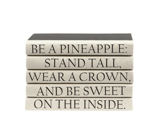"BE A PINEAPPLE: STAND TALL, WEAR A CROWN, AND BE SWEET ON THE INSIDE" Quote Book Stack