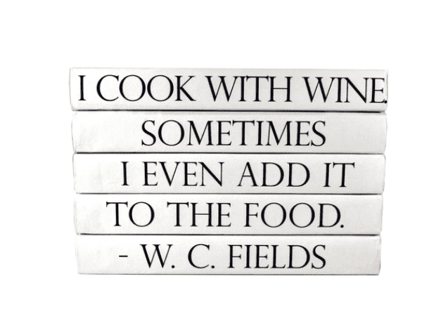 "I COOK WITH WINE. SOMETIMES I EVEN ADD IT TO THE FOOD" Quote Book Stack