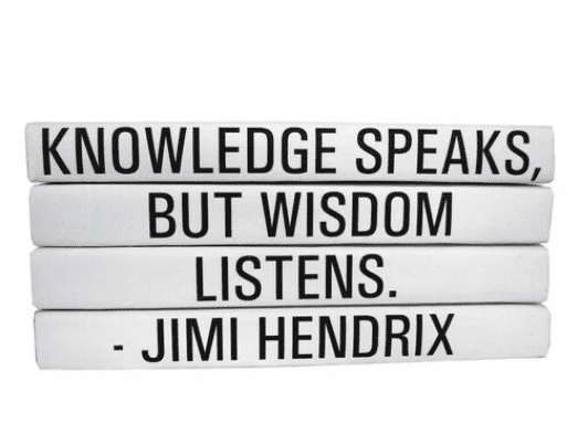 "KNOWLEDGE SPEAKS, BUT WISDOM LISTENS" Quote Book Stack