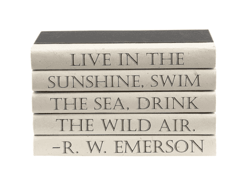 "LIVE IN THE SUNSHINE, SWIM THE SEA, DRINK THE WILD AIR." Quote Book Stack