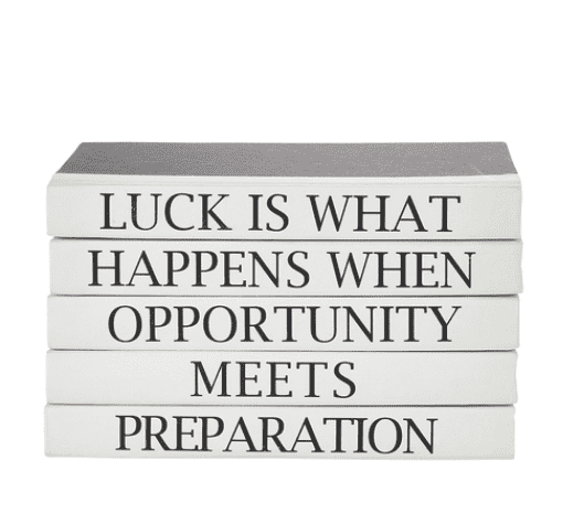 "LUCK IS WHAT HAPPENS WHEN OPPORTUNITY MEETS PREPARATION" Quote Book Stack
