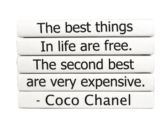 "The best things in life are free. The second best are very expensive" Quote Book Stack