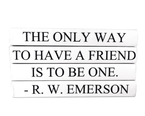 "THE ONLY WAY TO HAVE A FRIEND IS TO BE ONE." Quote Book Stack