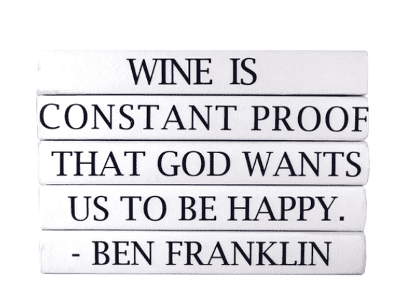 "WINE IS CONSTANT PROOF THAT GOD WANTS US TO BE HAPPY." Quote Book Stack