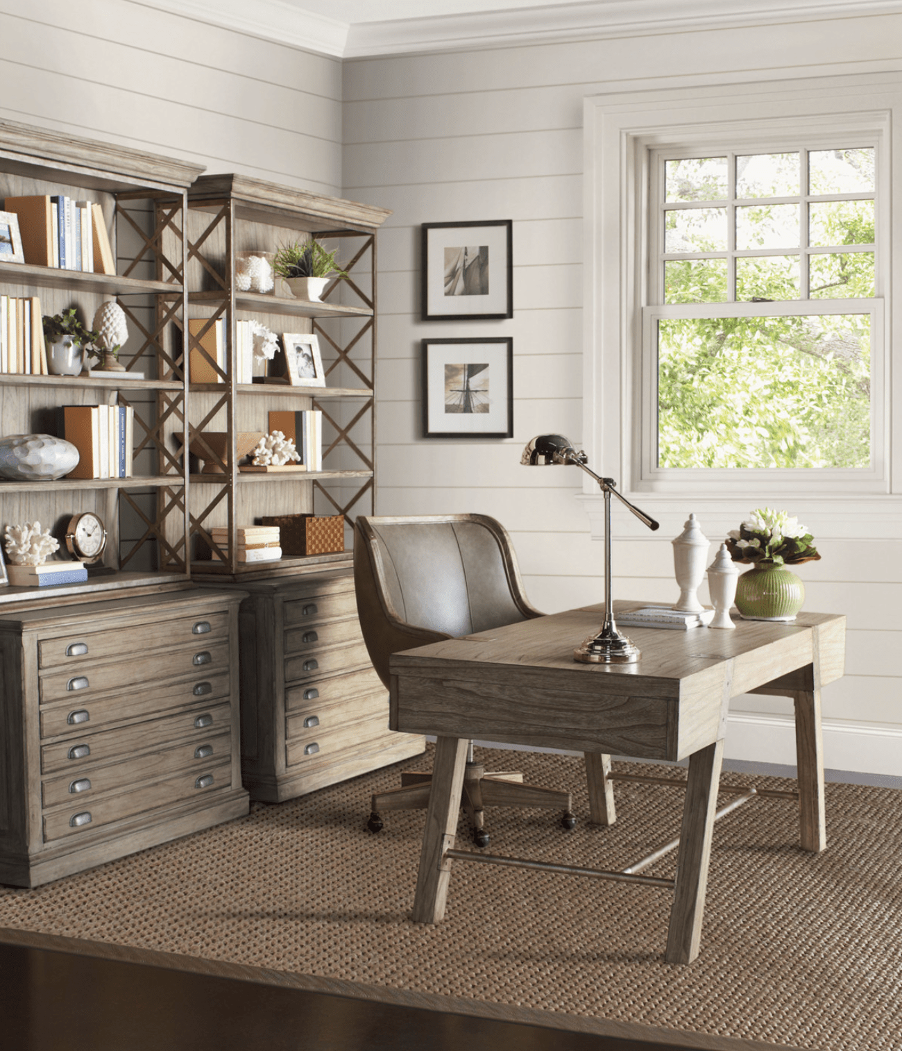Find coastal office furniture with beach theme appeal to add that perfect nautical touch to your business or coastal home office. Get work done in style, with office furniture in casual rustic and unique beach coastal living style. Who doesn’t love working from the comfort of your own home? Now is your chance to create your ideal office space with all things coastal. You’ll be sure to get the brain waves flowing while your amongst your dream work space. Browse our selection ofcoastal inspired desks like our Beach House Desk with criss-crossed and angled supports add architectural interest to a spare, French-inspired desk. Crafted from solid reclaimed wood with whitewash and sanded finish.