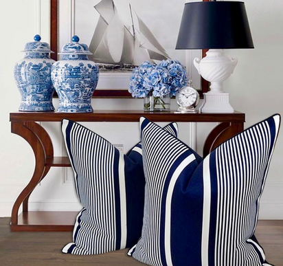 Pinnacle Bay Striped Blue Pillow - Two Sizes