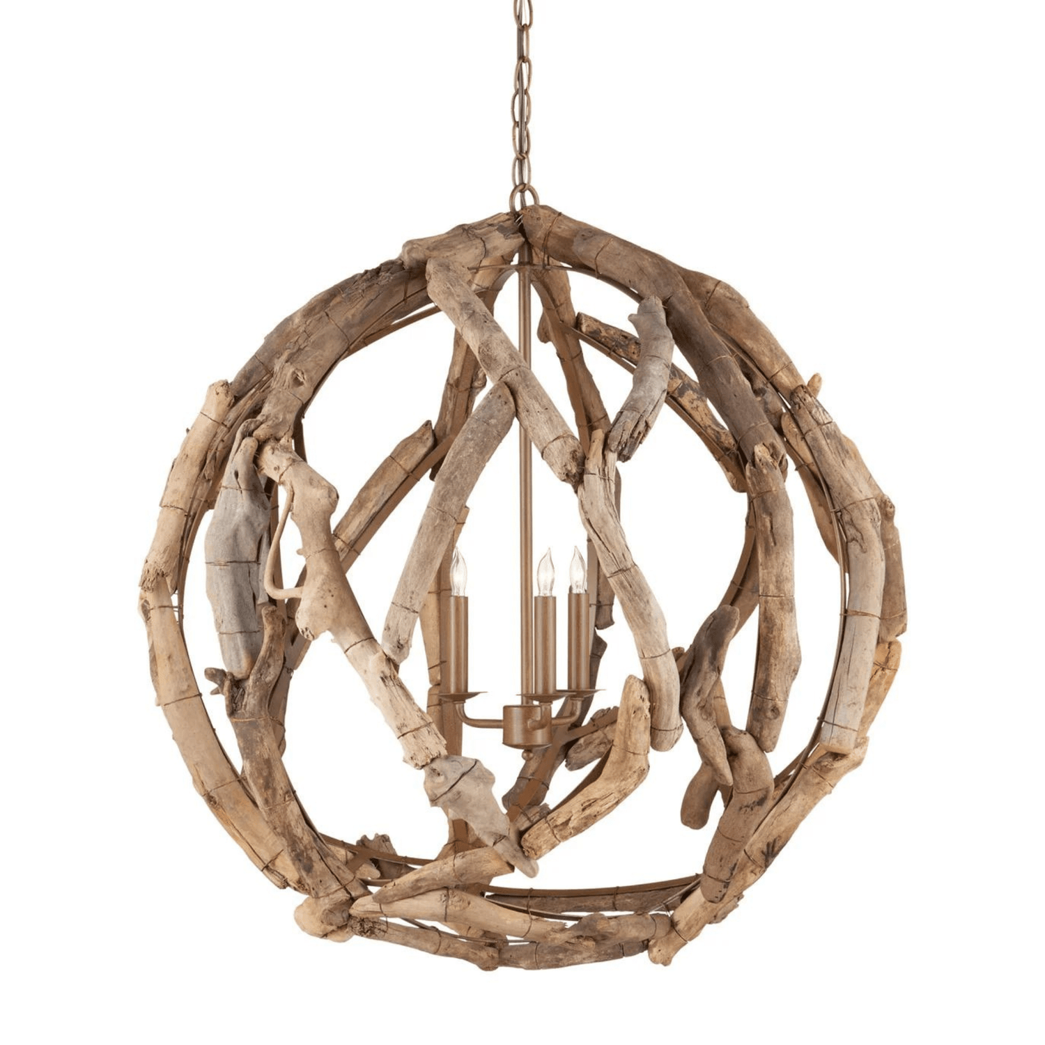 Decorative driftwood chandeliers add rustic appeal to your coastal lighting. Find several...