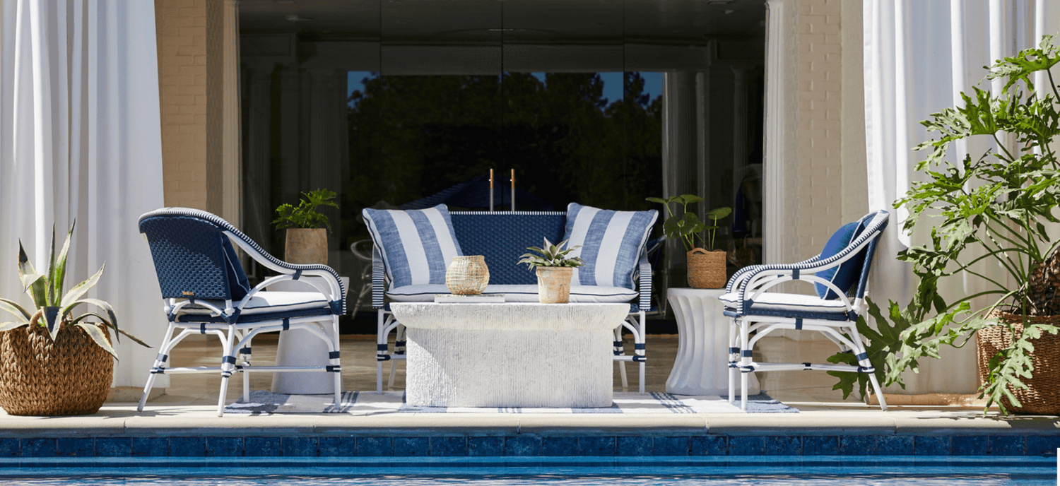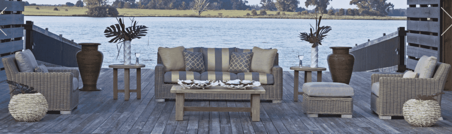 Our Boat House's Malibu Outdoor Furniture Collection offers durable weathered resin wicker...