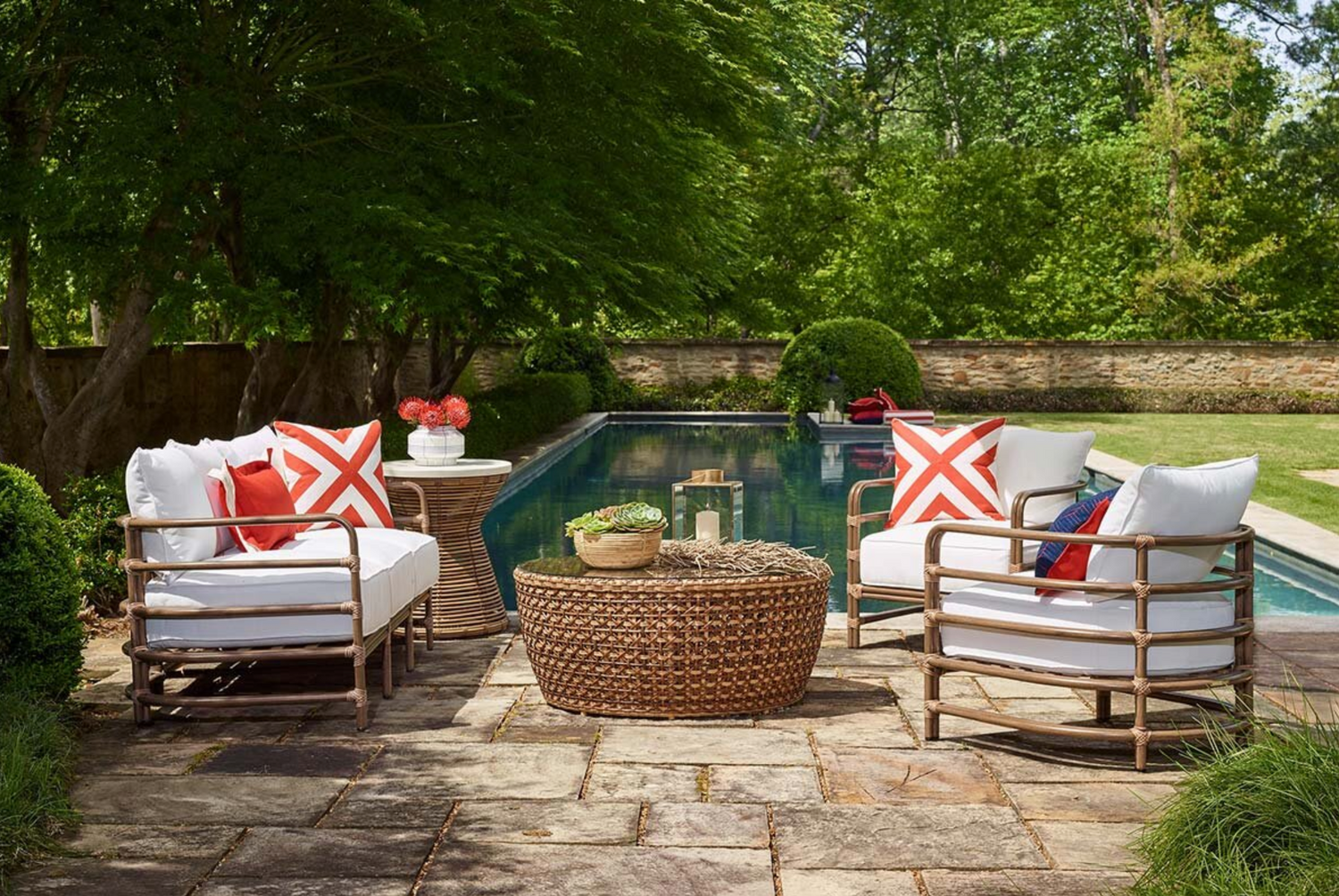 Some factors to keep in mind when choosing outdoor furniture is what material and finish works best for the area? What fabric color or pattern would coordinate or flow with the interior colors?