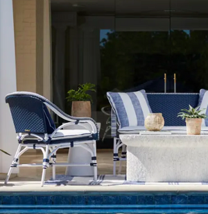 Each piece of synthetic wicker is hand woven by experienced artisans over a strong powder-coated aluminum frame. These wicker products feature the highest grade of durable, UV-resistant polyethylene (PE) fibers. Fixtures and jigs specially designed for each collection are used to assure uniform frame sizing during production. Minimal maintenance is required to keep your hand-woven synthetic wicker furniture looking fresh. Periodically wash with soft cloth, mild soap and water. Rinse well. Dry with a soft towel or let air dry. Avoid harsh abrasive cleaners.
