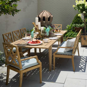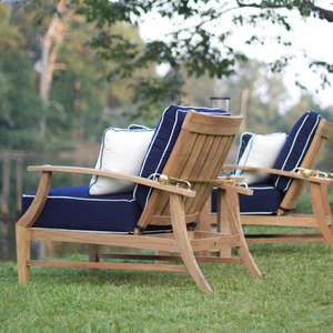 Slow-growing and grade A plantation-raised teak is the finest grade of this most valuable tropical hardwood and it is what we use for our beautiful teak furniture. Teak is the best wood for luxury outdoor furniture due to its high oil content, which makes it stand up to extreme environmental conditions and insect and rot repellant. Our teak is responsibly sourced from re-forested teak plantations, meaning no natural teak forests are being damaged or diminished. We employ best-in-class construction techniques that include kiln drying, finger joinery and box joints. Together, all of this ensures that your product will withstand prolonged outdoor exposure. Teak is a low maintenance wood, and we recommend that you allow your furniture to age naturally. Its close, tight grain and abundance of natural oils make teak hard- wearing and highly resistant to rotting, sunshine, snow and rain. After prolonged exposure, teak’s original golden honey color will begin to transition to a soft and silvery gray. Natural teak shouldn’t be painted or sealed at home; it won’t adhere properly and will eventually peel off. CARE & MAINTENANCE - FRAMES Teak expands and contracts with changes in the environment. This movement can cause hairline cracks in the wood and at joint locations. This does not affect the structural integrity of the product and is not grounds for replacement. Due to the high oil content of teak wood, some of it will come to the surface of the product. This appears sometimes as streaks or spots that are brown or red in color. This is natural and unavoidable. As the oil evaporates over a period of months, it will subside. During this oil surfacing, you may notice oil stains on your cushions, particularly if they are light in color. The use of a wood protector will help mitigate some of the oil surfacing and fabric staining. CLEANING Minimal maintenance is required to keep teak wood looking good. Dust and dirt can collect on the furniture, and over time may turn into mildew. Depending on your environment, cleaning is suggested every 3-6 months. Routine cleaning is recommended every 3 months for warm, humid environments, and every 6 months for cool, dry climates. Periodically clean your furniture using water and a mild cleanser such as dish soap and a soft nylon brush. You may also use a teak cleaner