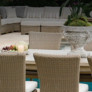 Our coastal outdoor furniture collections are made for the harshest environments while keeping comfort and beauty of the utmost importance. Our outdoor beach furniture collection includes an exclusive weathered marine grade teak-mimicking look. Coveted silvery grey patina of aged teak, highly sculptural hand-woven patterns, superior N-dura Resin available in oyster, driftwood and walnut finishes, slipcovered pieces that emulate indoor living. Find long-lasting pieces built for beach patio furniture living.