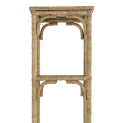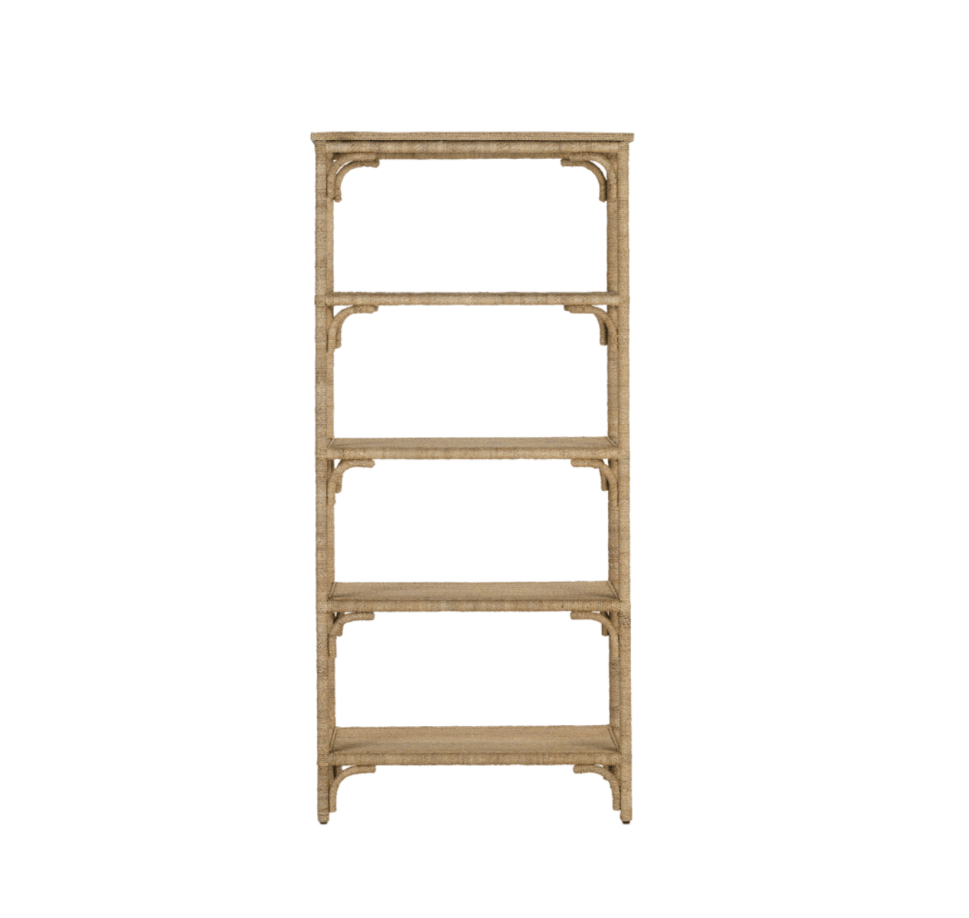 With the earthy feel of rattan and wicker, the Portofino bookshelf/étagère is covered in braided Abacá rope to bring a natural elegance to a room. The dexterity required to wrap a piece of furniture so skillfully makes this piece so special.