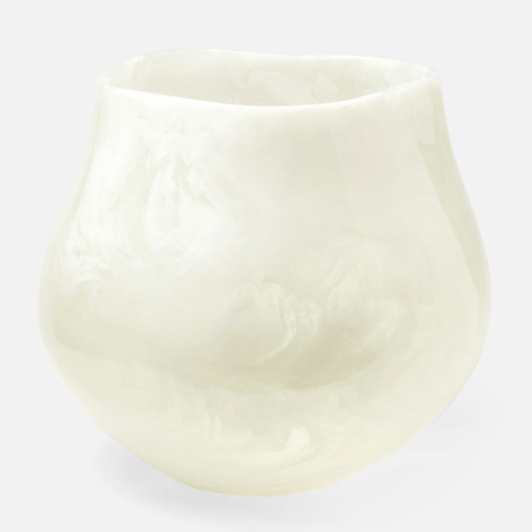 Bringing the drama and beauty of an indoor vase, the Abria is oversized and organically shaped. Crafted from layered resin developed for yachts, this pleasantly unconventional material added an organic flare that accents the outdoor's natural beauty.