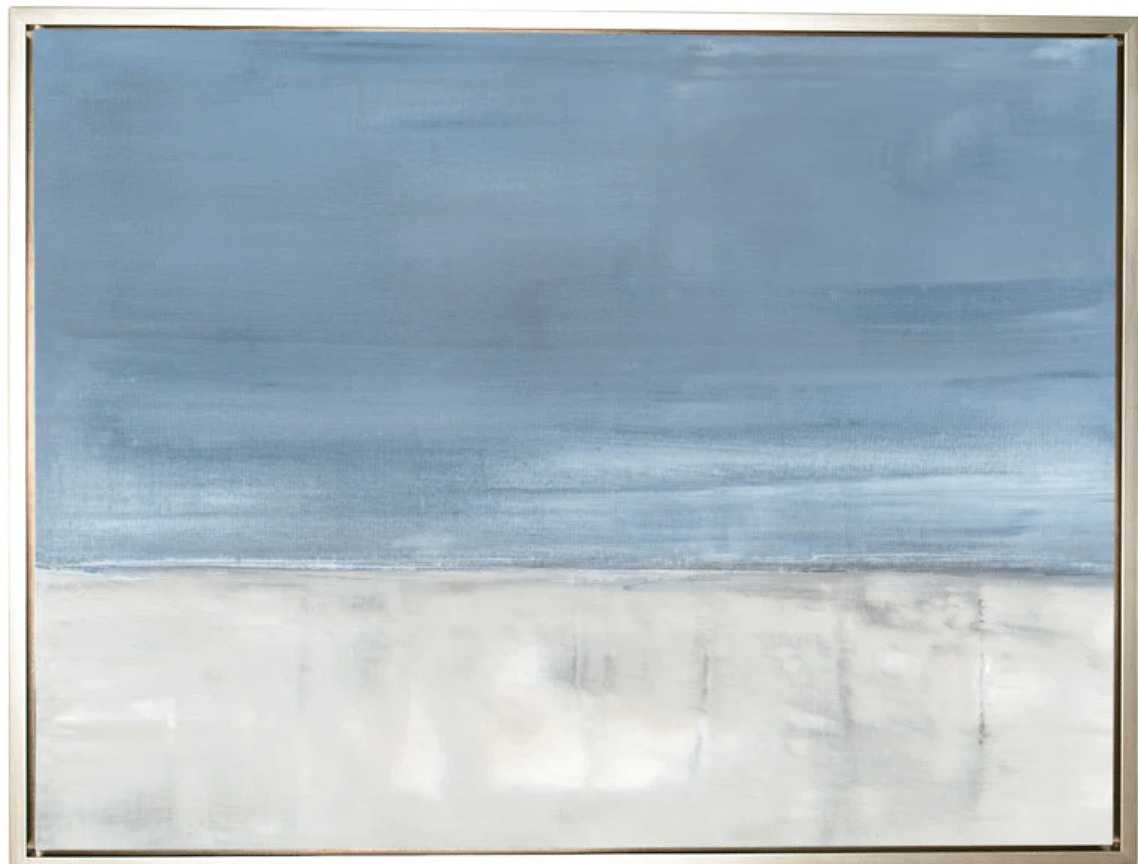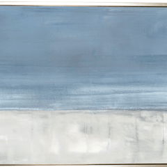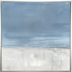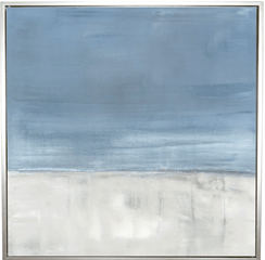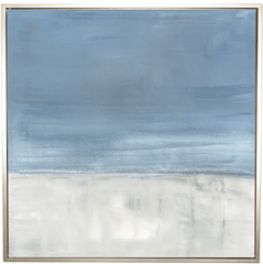 Abstract coastal art at its best. Adrift No. 1 is a soothing seascape with white, sky to powder blues and splashes of pale gray. This art is reproduction canvas.
