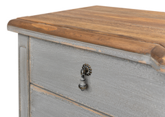 Evoke timeless romance with the Dutch sideboard. Crafted from pine in antique grey, its two removable shelves create the perfect backdrop for love stories in a traditional setting.
