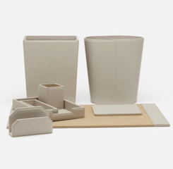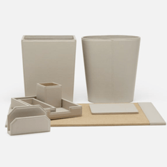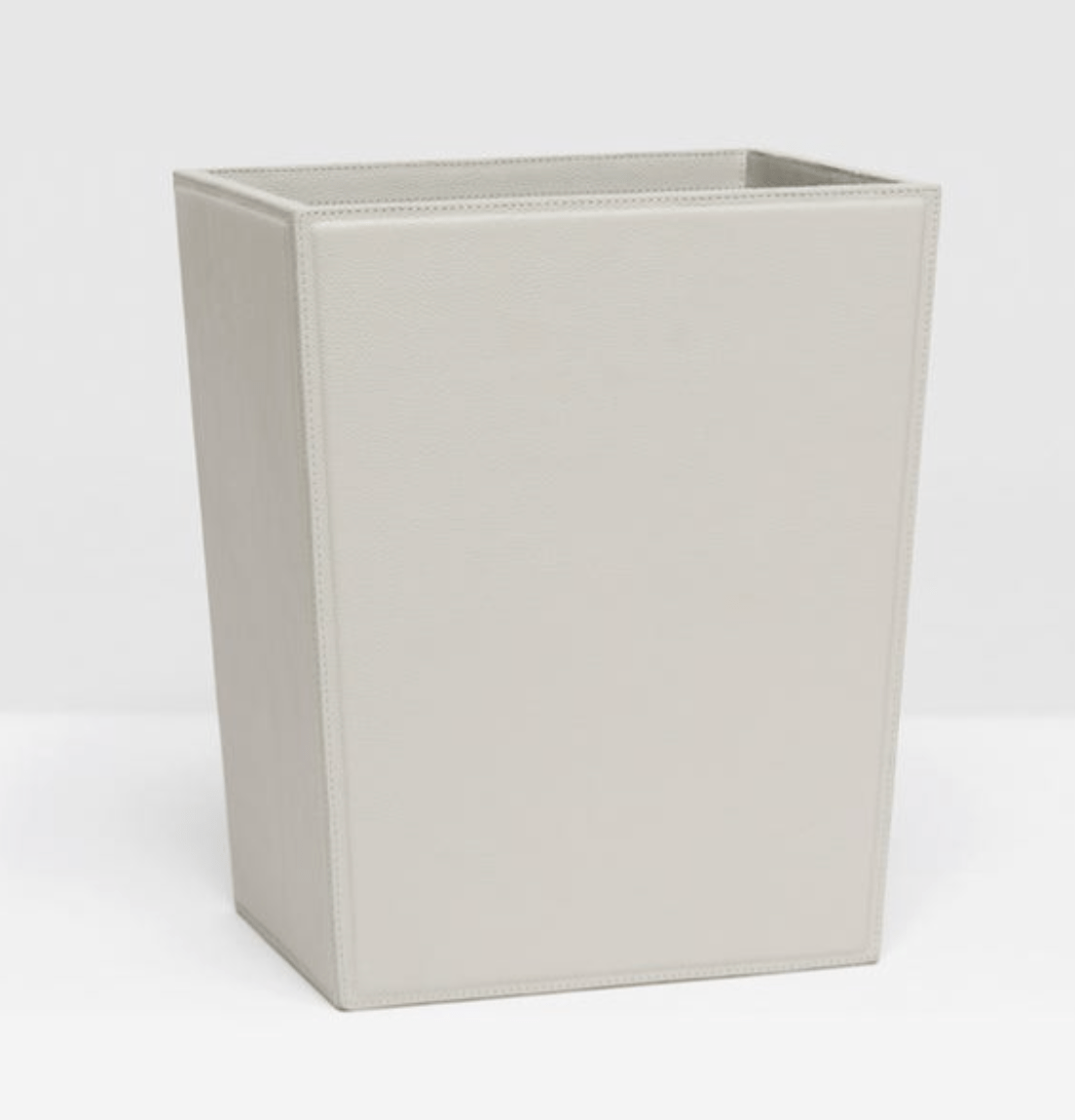 Stylize a study or elevate the details of a desk! Raised full-grain leather in soft, versatile finishes makes our Asby a refined collection for any client. Choose from oval or rectangle waste baskets.