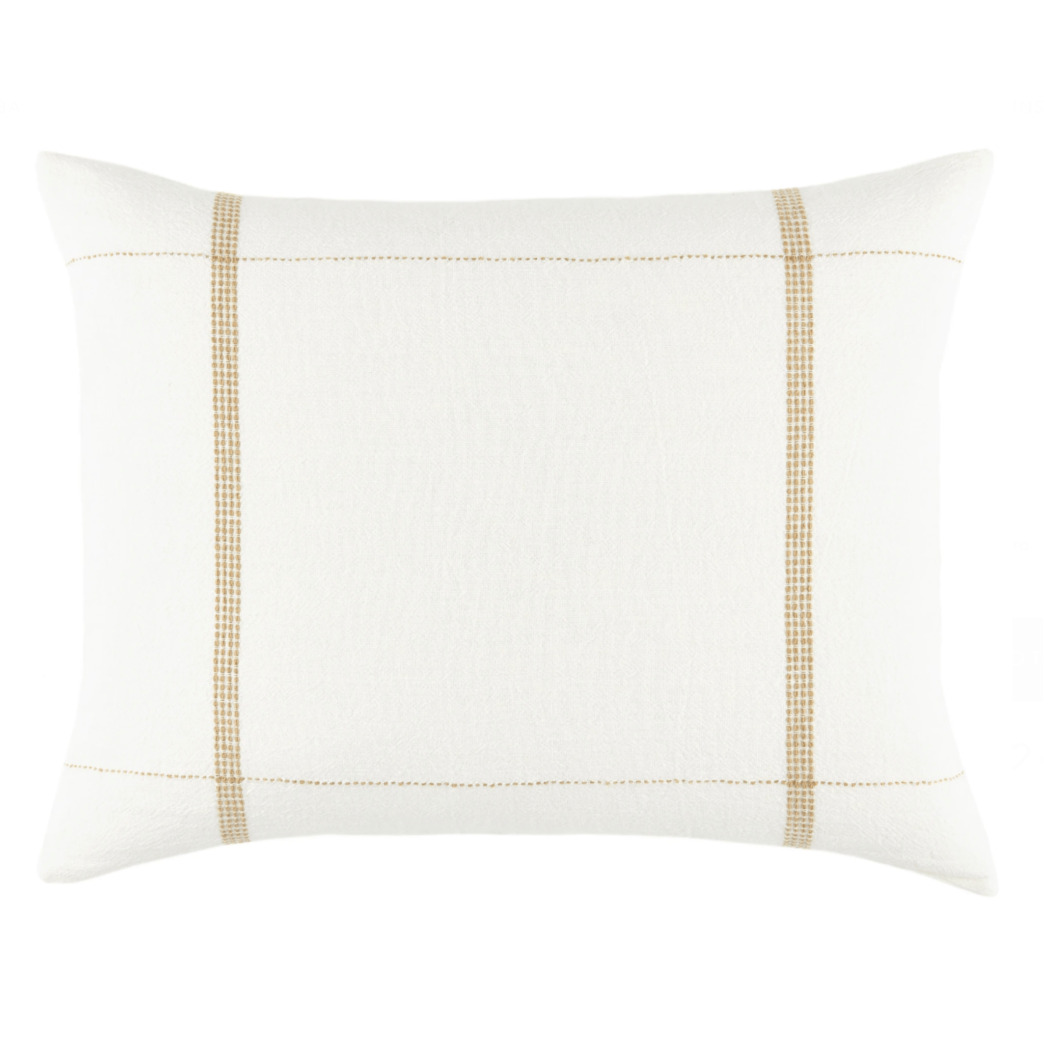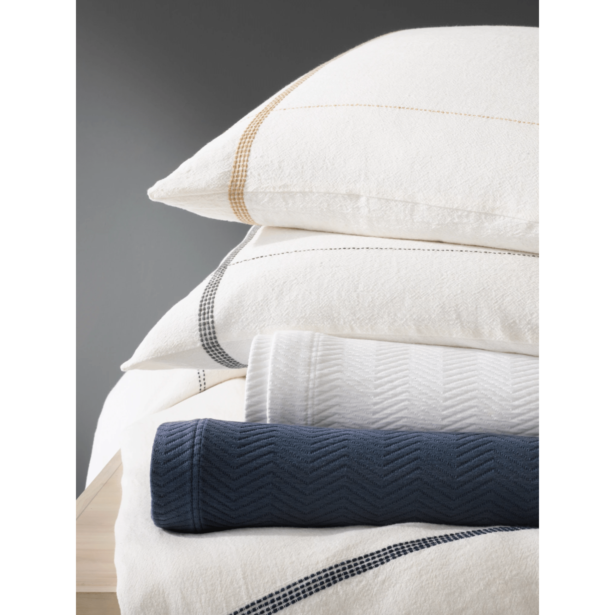 Inspired by antique, homespun grain sacks, the Atherton Shams boasts large windowpane checking that will add a modern farmhouse aesthetic to any to any decor. Subtly engineered to resemble hand stitching, the heirloom flaxen quality softens with every wash, with very little wrinkling, and is made to last a lifetime.
