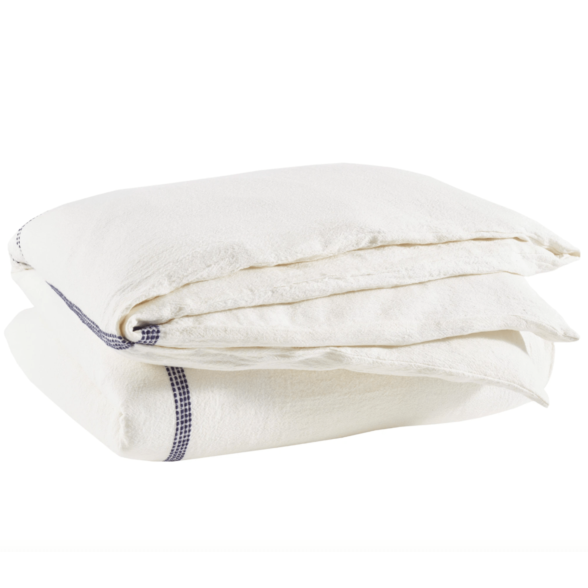 Inspired by antique, homespun grain sacks, the Atherton Duvet Cover boasts a large windowpane check that will add a modern farmhouse aesthetic to any decor. Subtly engineered to resemble hand stitching, the heirloom flaxen quality softens with every wash, with very little wrinkling, and is made to last a lifetime.