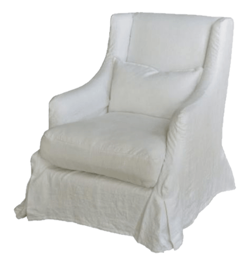The Barent's Island Belgium Linen Slipcovered Chair is a classic, coastal beauty in crinkle pure white linen with a solid white oak frame. This chair comes with a petite lumbar pillow and a removable, machine washable slipcover. Great choice for your coastal home!