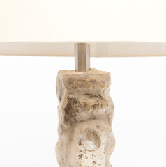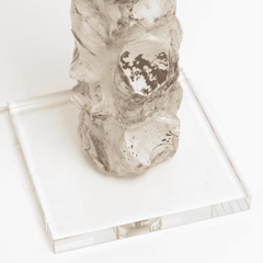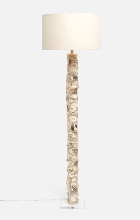 Classic and beachy, the Bay Point sculptural floor lamp is made from oyster shells stacked in a plaster resin. Every lamp is one of a kind, and natural variation is to be expected. The base is a square acrylic.