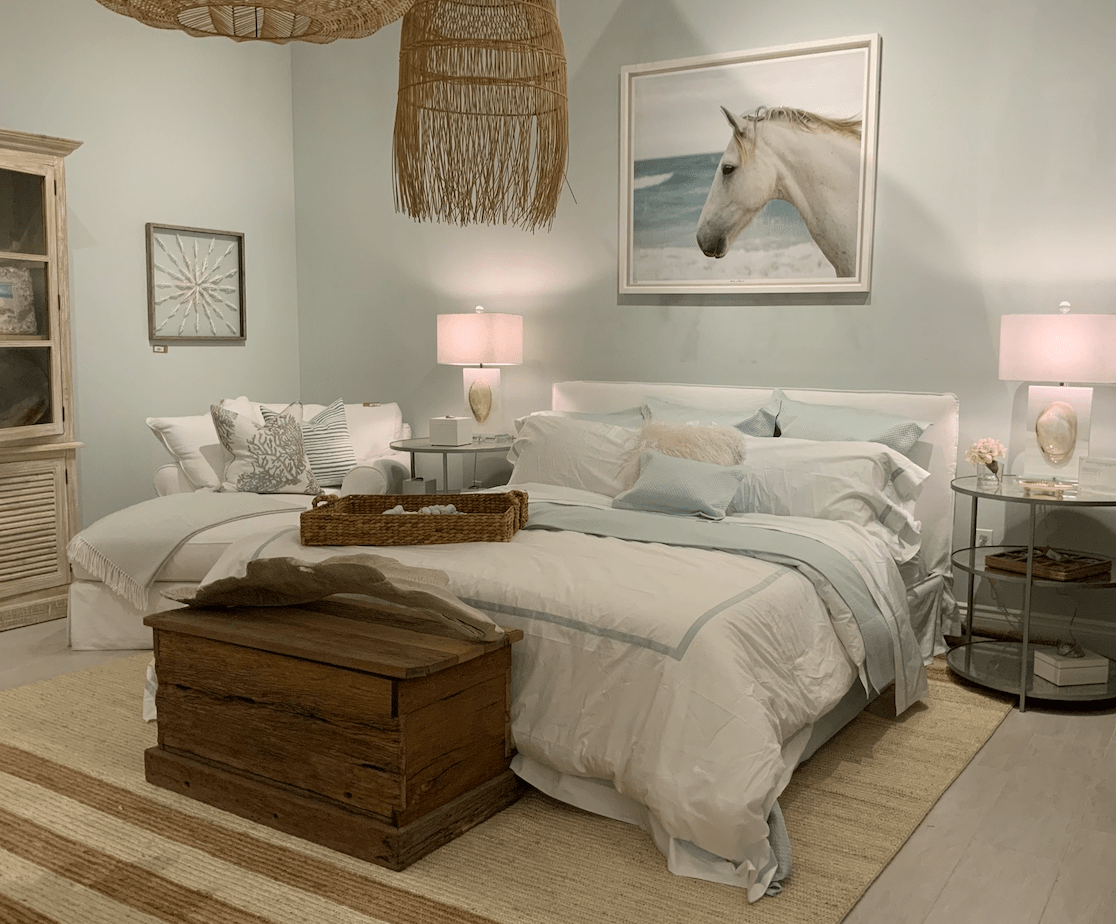 Browse our coastal style beds, headboards and footboards in seaside colors and designs, including reclaimed wood, driftwood, slipcovered, woven texture and more. Our best selling hanging rope beds are the perfect balance of nautical and neutral that will wow all of your guests. Place them in the bedroom or outside on a porch with decorative pillows to create the ultimate backyard escape. Our slipcovered headboards are comfortably chic and can be accessorized with driftwood, nautical lamps or a willow wicker bench at the foot of the bed. Melding a more tropical island vibe with the sun-bleached charm of the coast state-side, the Meadow Woven Bed doesn't shy away from its surf inspired roots.