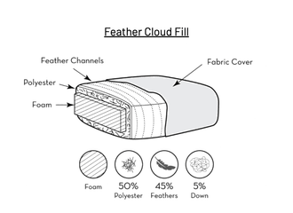 Fill Details: Feather Cloud is soft and luxurious. The seat consists of a foam core insert that is surrounded by a channeled envelope filled with 45% organic feathers, 5% down, and 50% polyester fibers. Channels prevent shifting and clumping. Feathers and Down are pre-washed and air-blown at our factory to reduce dander. Feather Cloud is our most popular fill - offering great comfort and value.