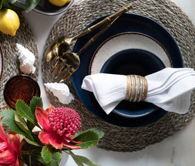 The new Betty tablecloth with double-eyelet trim adds a subtle elegance to any tabletop. Pair it with Betty's new rich-toned napkins to make a bold statement.