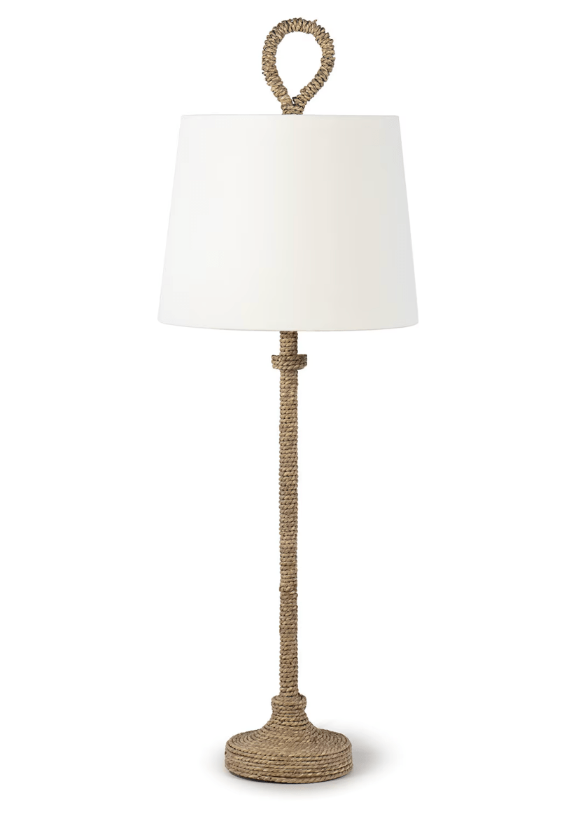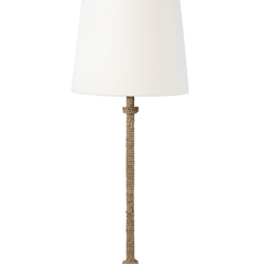 Luminous, watery glass make up this elegant drum-like body of the Antibes Table Lamp resembling that of the surface of an antique windowpane. Finished with polished brass hardware and finial bring warmth to the clear glass lamp, which is topped with an off-white shantung shade. A Glass base makes it the perfect accent lamp in any home since it works with most any decor.