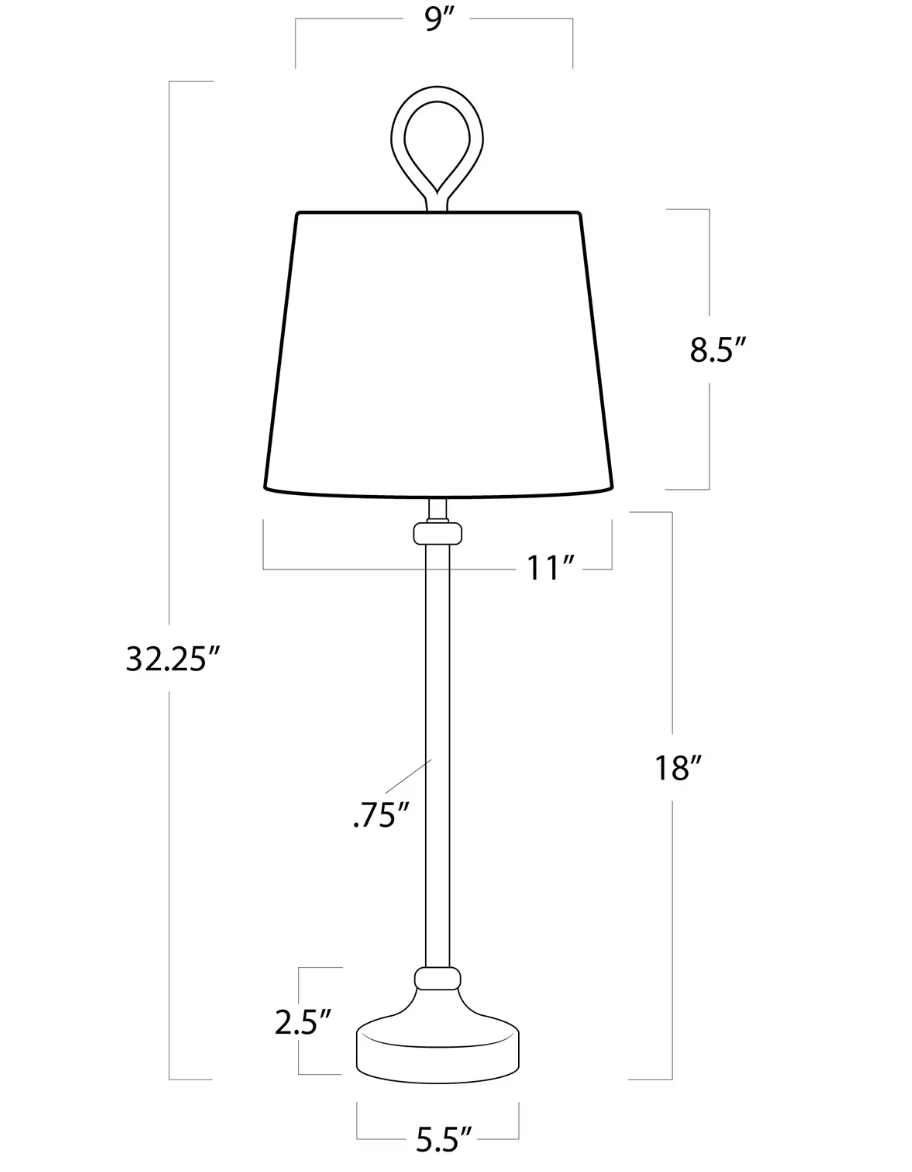 - Body: 12.25"h x 9.5"dia, Neck: 2", Harp: 8.5"