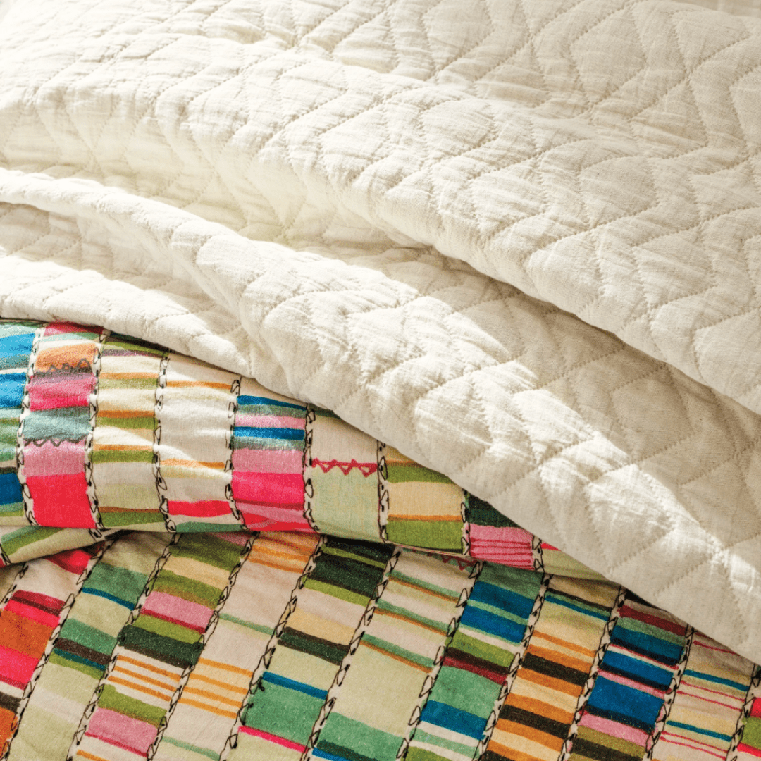Cuddle up in this effortlessly relaxed coverlet, quilted in cotton for supreme softness and lived-in texture. A stitched geometric diamond detail lends visual interest and plenty of loft.