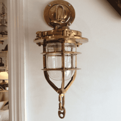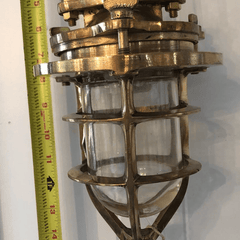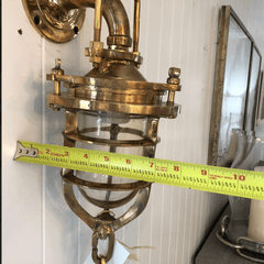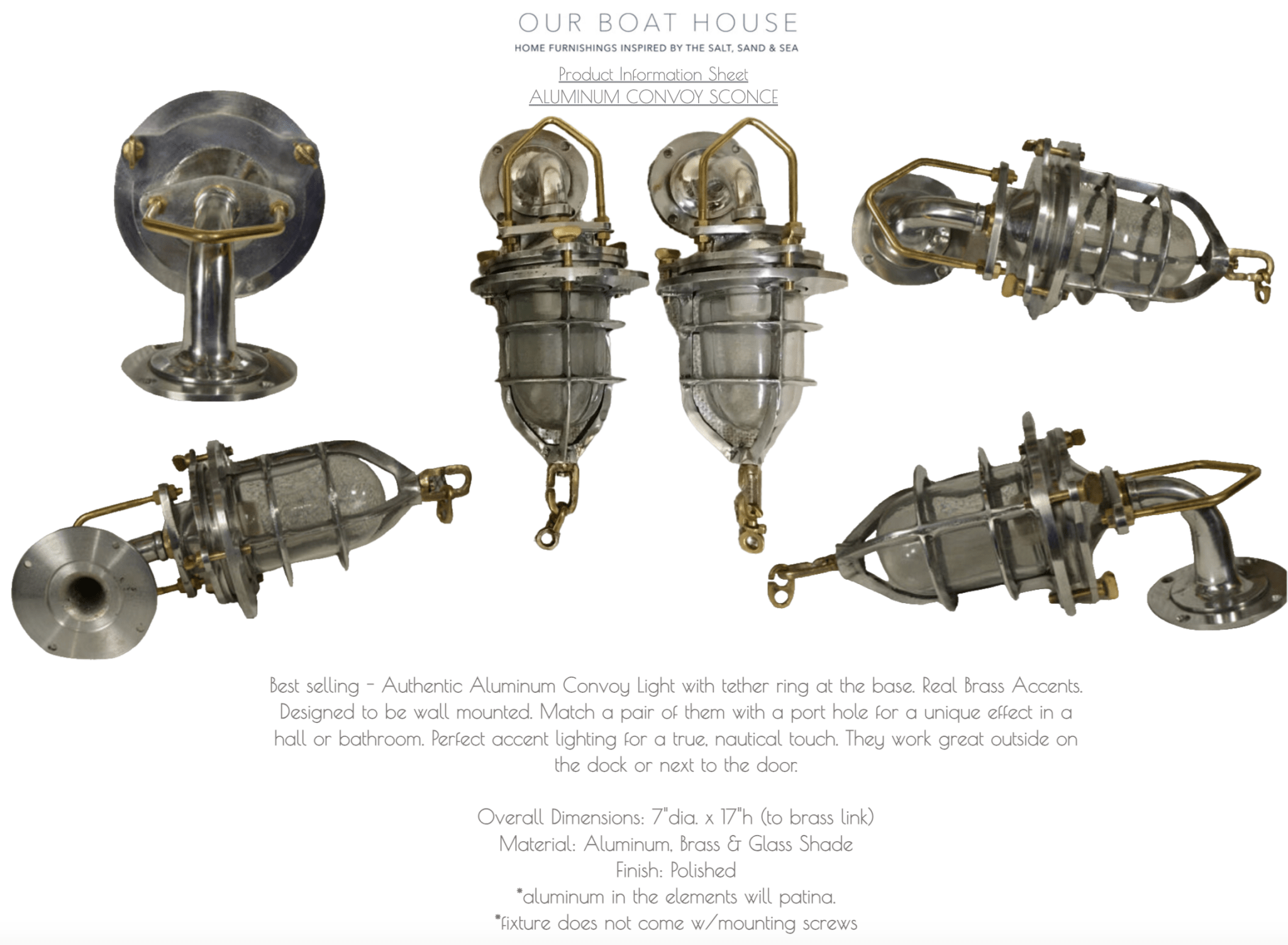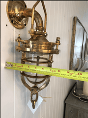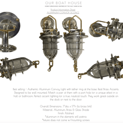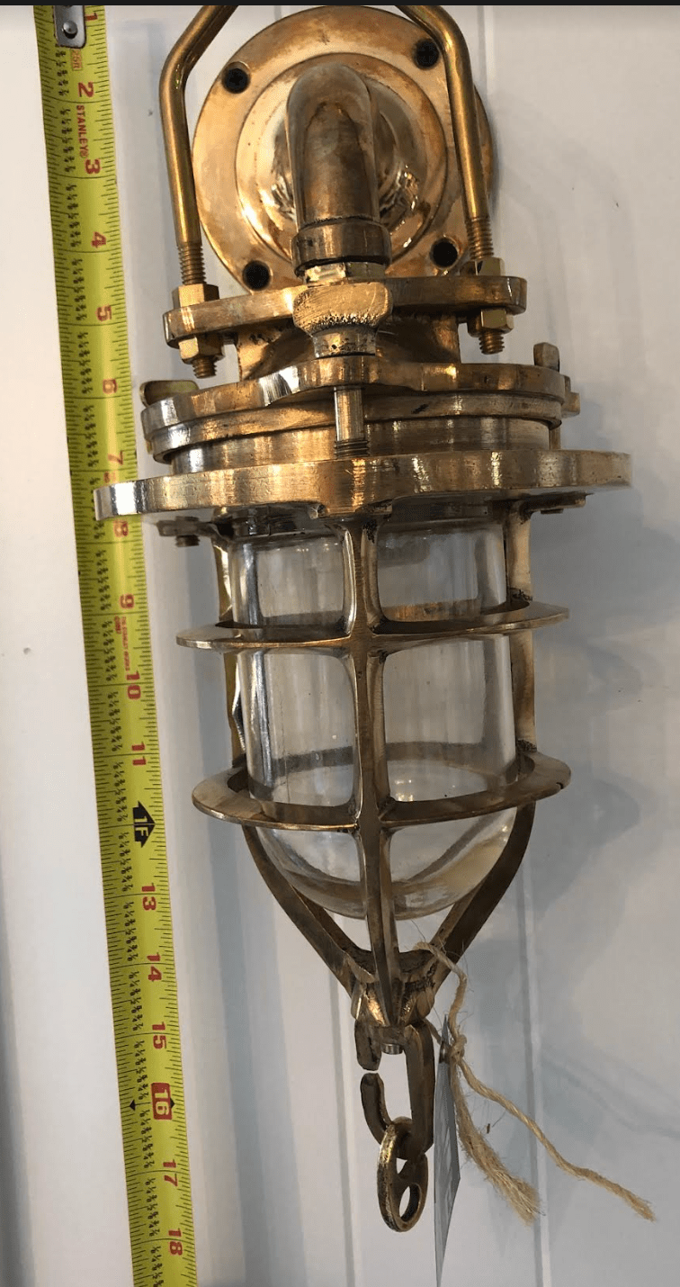 Authentic Brass Convoy Light. Designed to be wall mounted. It is great indoors or outdoors. Match a pair of them for a unique effect in a hall or bathroom. They work great outside on the dock or next to the door. Brass cage covers glass, threaded globe. Does not come with screws for mounting.