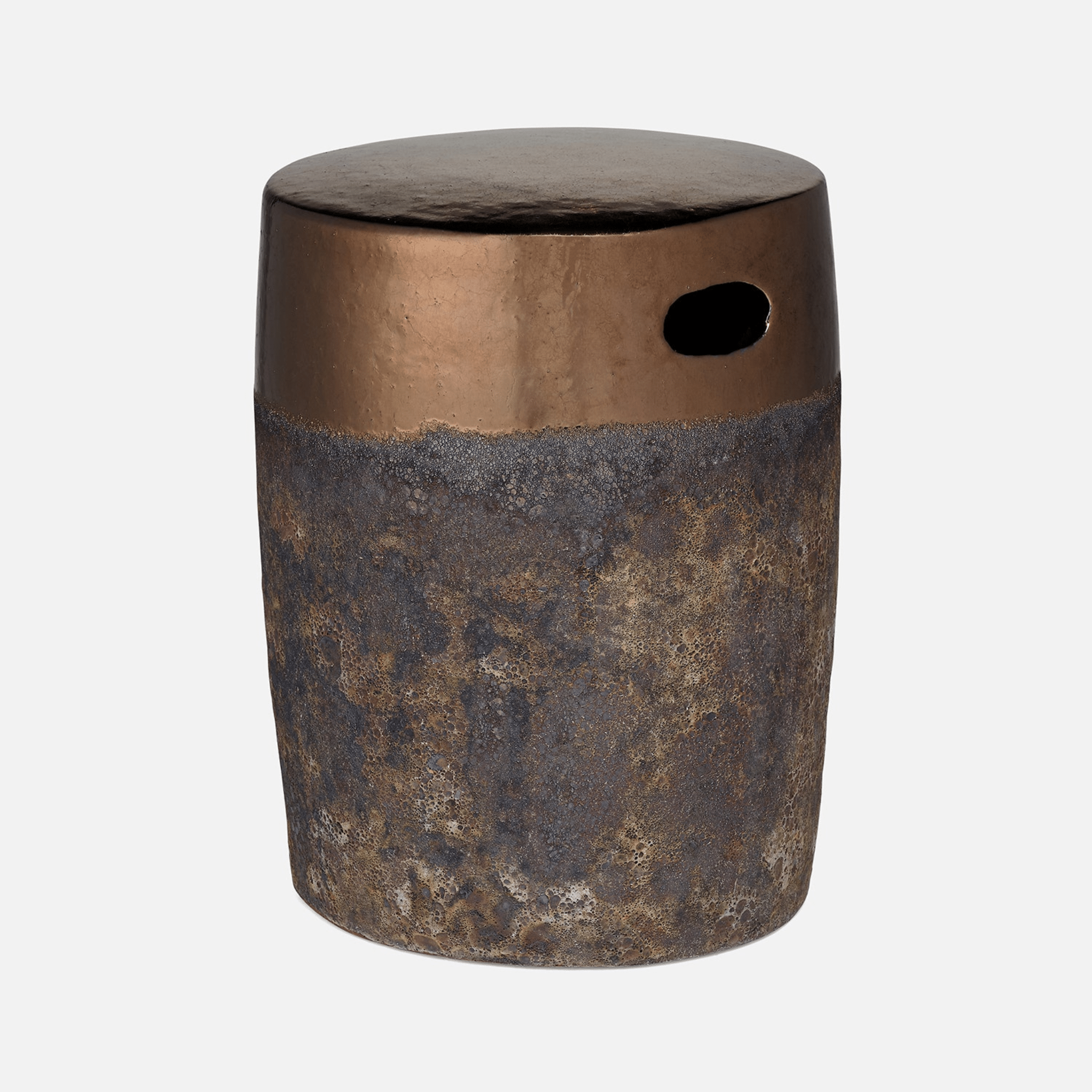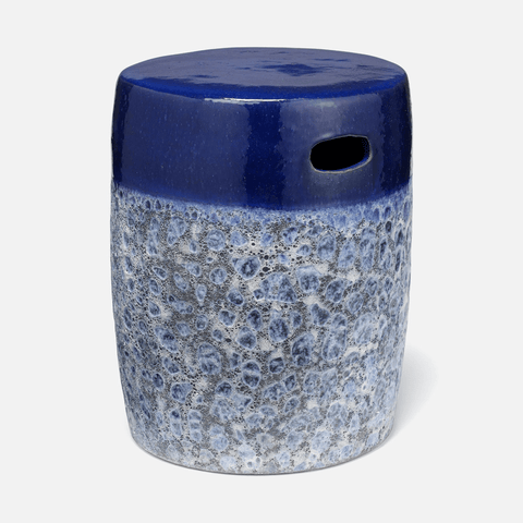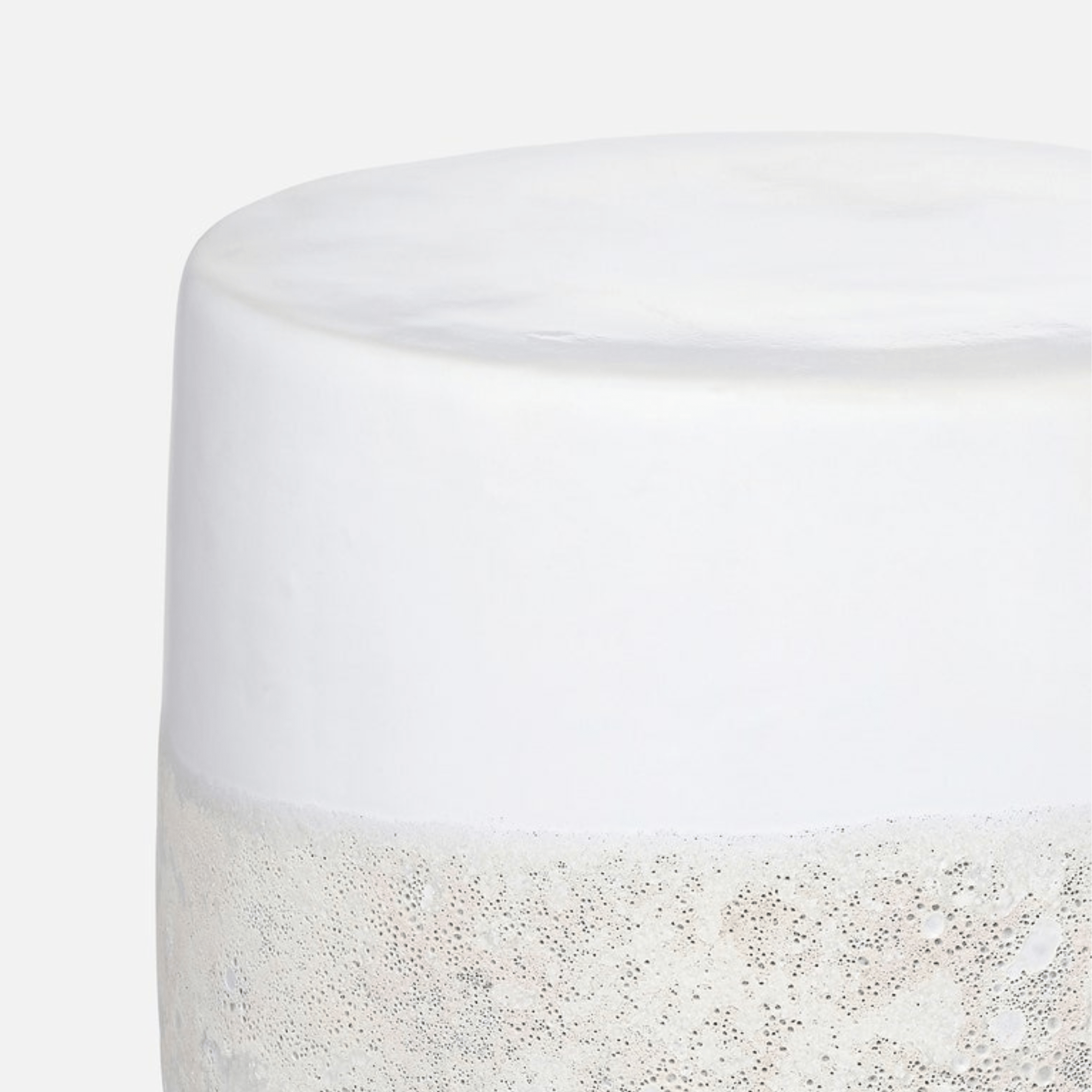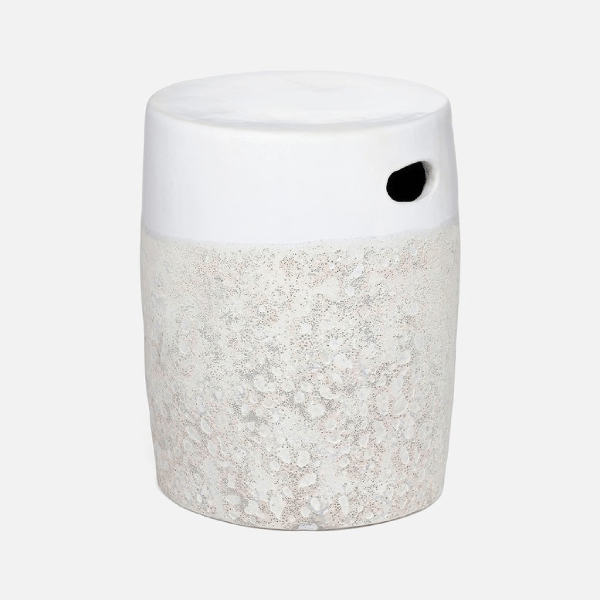 Our Caden Stool is crafted from ironstone using a reactive technique. Intriguing with a two-toned appearance, a heavily textured bottom portion juxtaposes with a semi-gloss top.