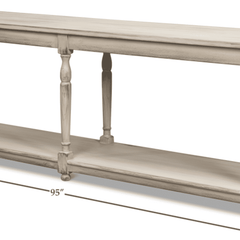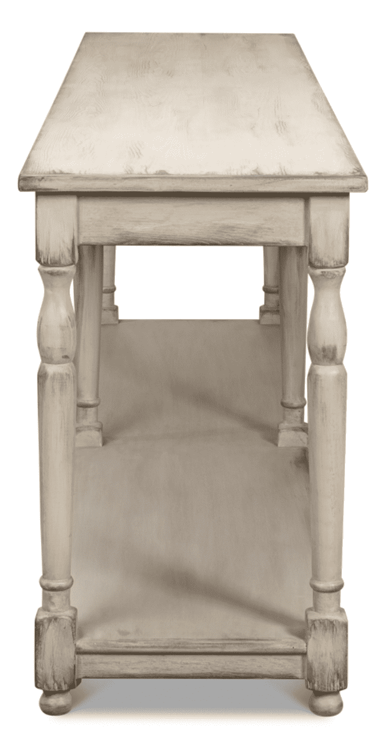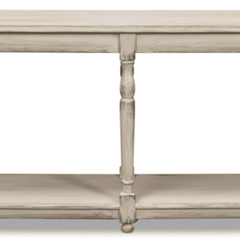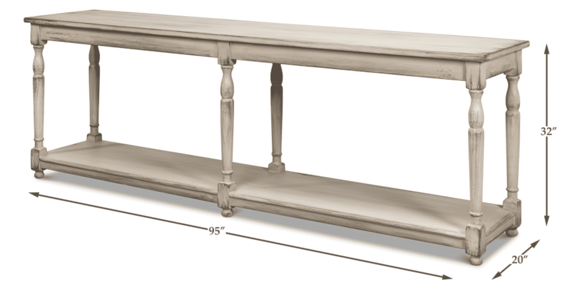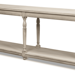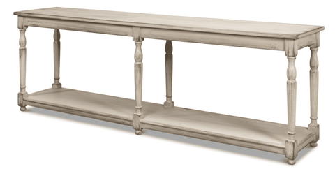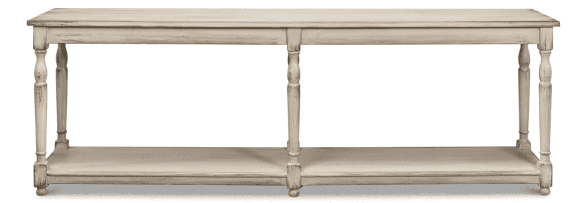 A nice long console table is hard to find, but one this beautiful is simply rare. Crafted of reclaimed pine painted in a muted ivory with distressing, the Camilla Console Table has lower level storage for displaying your favorite decorative accessories, books, florals and more.
