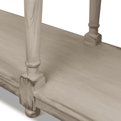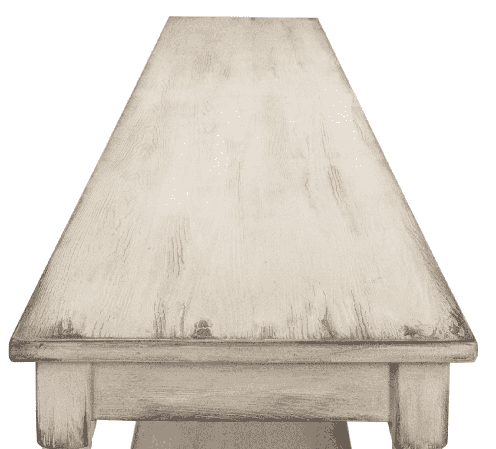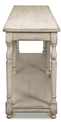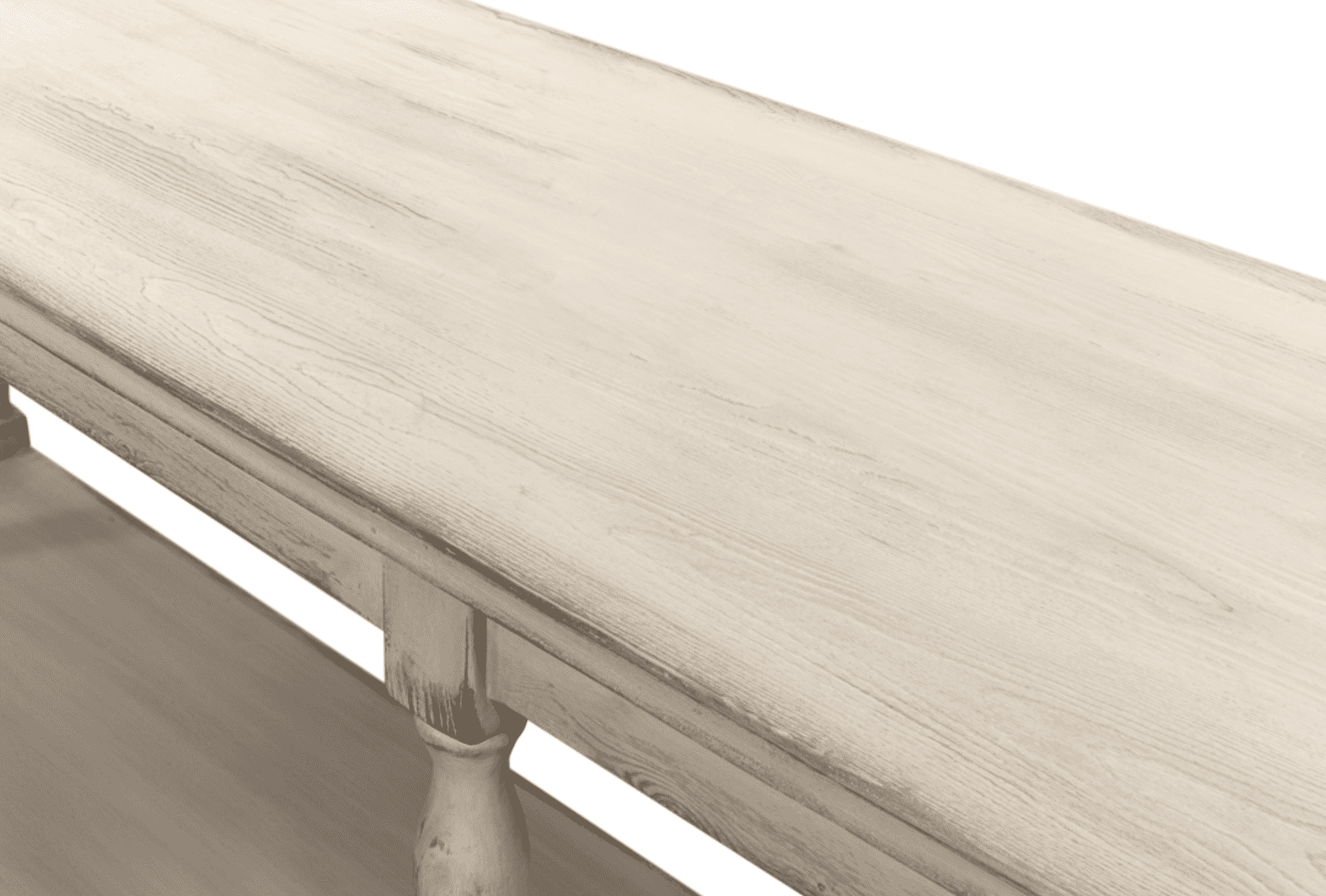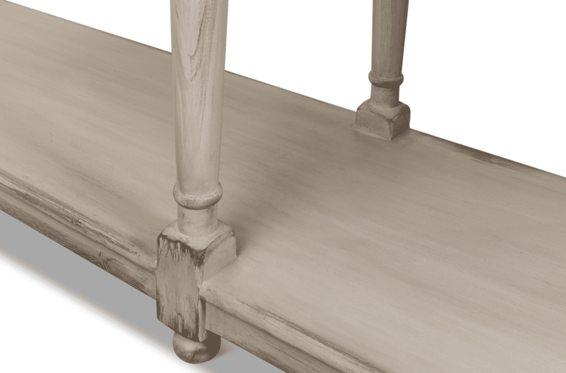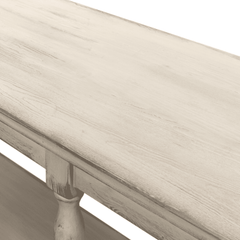 A nice long console table is hard to find, but one this beautiful is simply rare. Crafted of reclaimed pine painted in a muted ivory with distressing, the Camilla Console Table has lower level storage for displaying your favorite decorative accessories, books, florals and more.