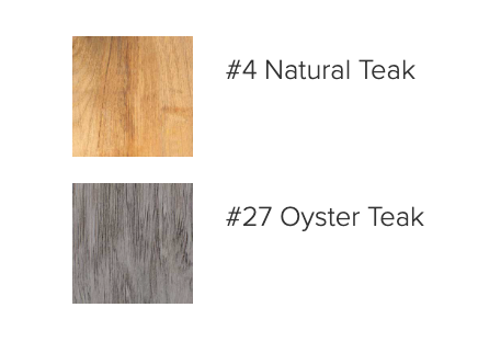 Finish Details: Featuring the finest teak in the world was sought out to design our wooden furniture pieces. Teak Collections feature high quality teak frames with mortise and tenon construction. All of our Teak Collections are available in Natural Teak and our Oyster Teak finish, which was designed to mimic the silvery grey patina teak develops as it ages.