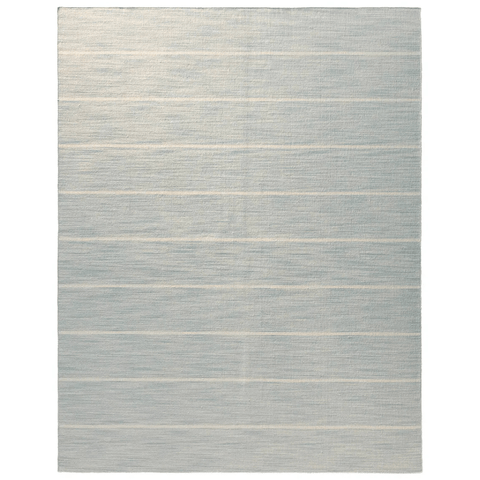 Classic with a subtle stripe, this soft blue and cool white flat weave area rug lends traditional charm to any space. This casual layer offers reversible use for easy care and timeless durability. Cape Cod Rug construction is flat weave, 100% wool rug that is 1/6" high. Durable, yet coastal in style.