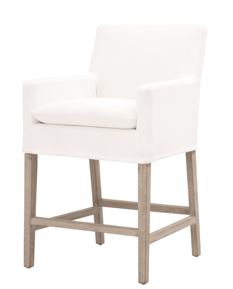 The Carlsbad Slipcovered Counter Stool features a comfortable cushion and back slipcovered with a pearl white performance fabric. Relax with a beverage and your laptop because this counter stool brings an elevated style to your kitchen island or bar.