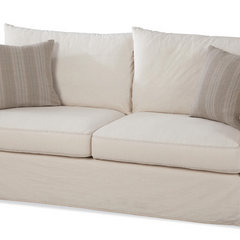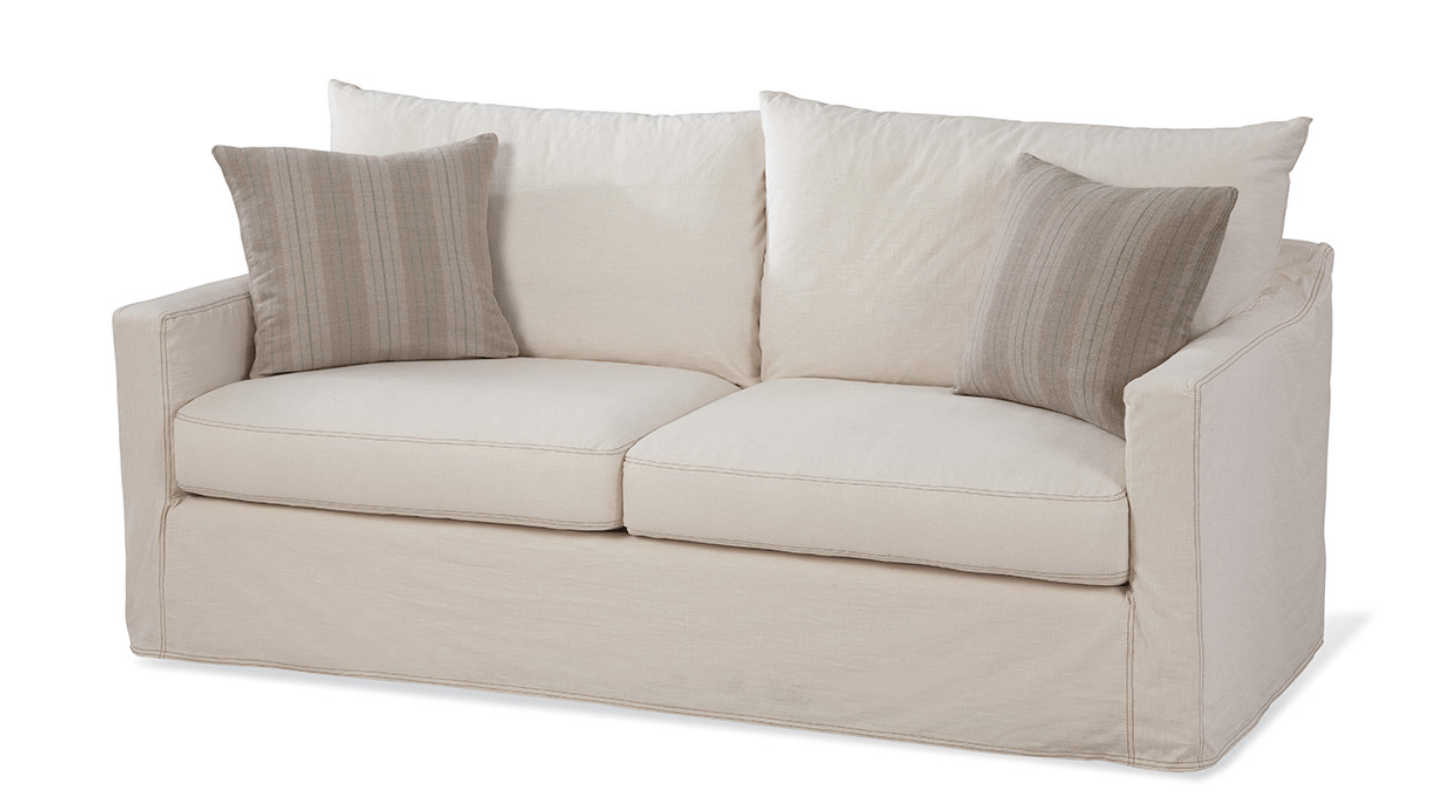 The Catalonia Slipcovered Sofa offers a neat, clean yet relaxed coastal feel. With a slightly sloped arm from the back rail, the plush, rectangular back cushions paired with the sink-in comfort of the seat cushions, this sofa offers a neat, clean coastal feel. The clean seam and knife edging gives it a more modern feel. Available in various sizes and seat configurations.