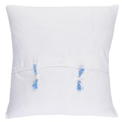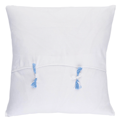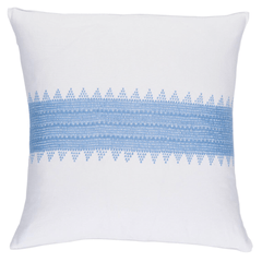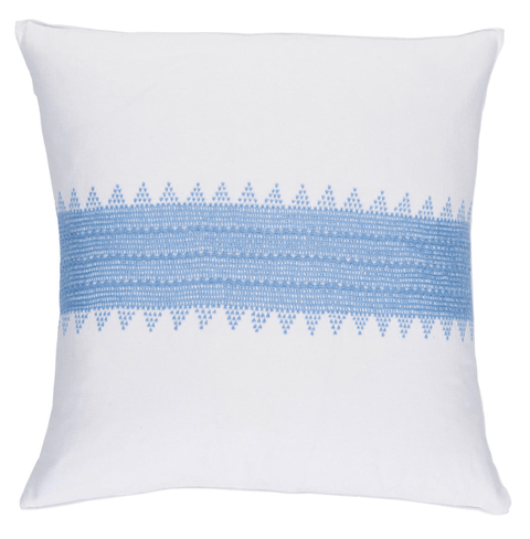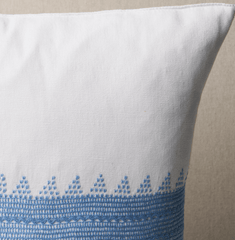 The Chamula Accent Pillow in Sky features intricate embroidery by a skilled collective of Maya women weavers. The pillow is finished with hand stitched sides and includes a plush feather insert. These artisanal pillows are made in the highlands of Chiapas, Mexico, using the traditional backstrap loom technique. Due to their handmade nature, expect slight variation in the color, pattern and size.
