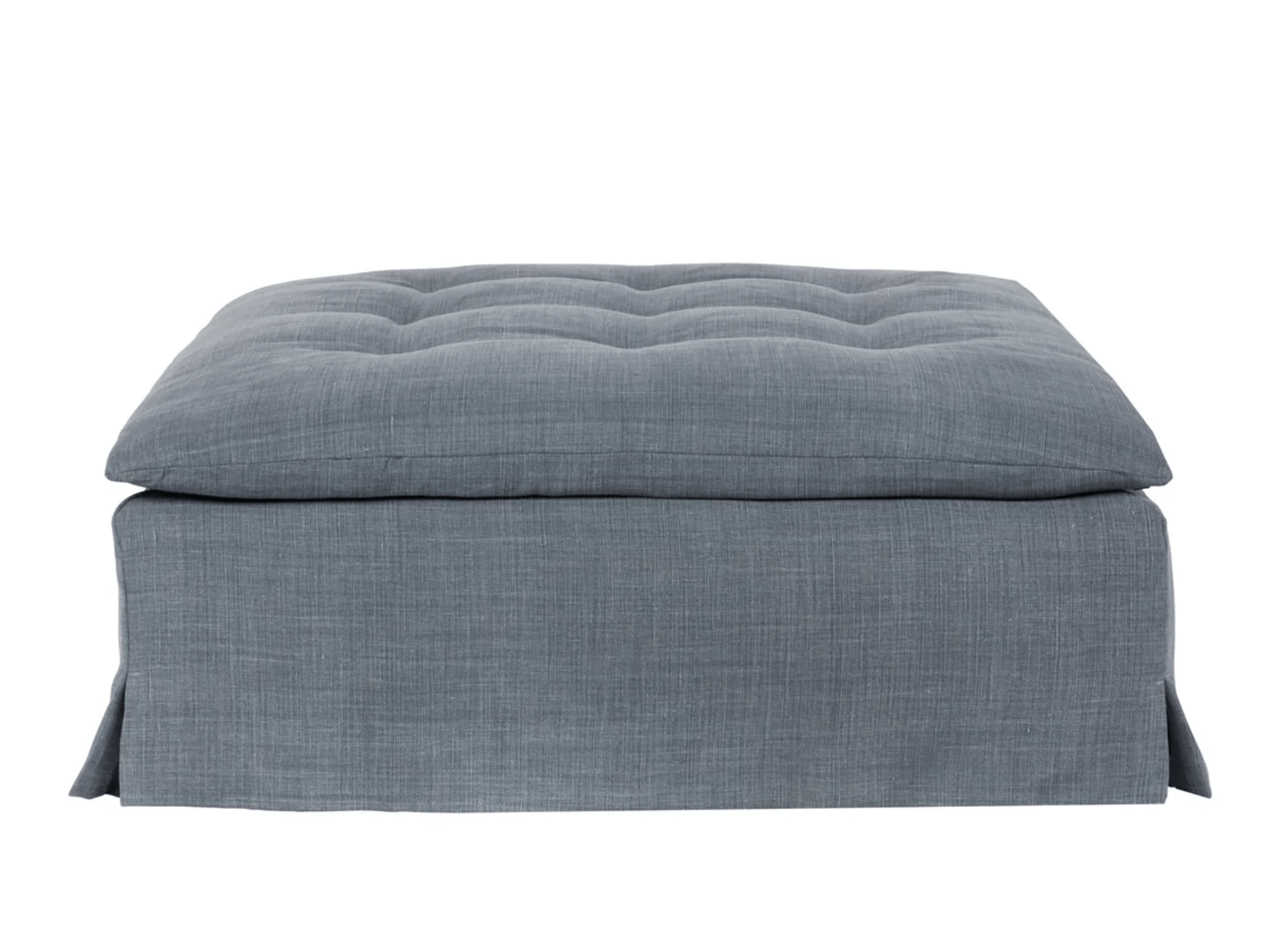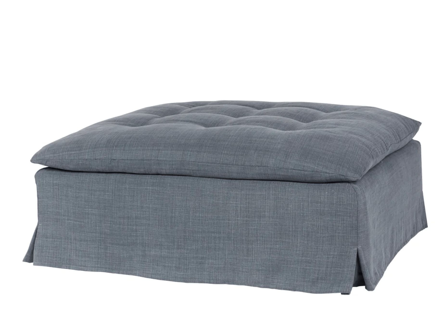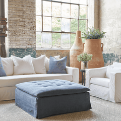 A stately, tailored profile makes the Chatham Slipcovered Ottoman ideal for most living room spaces. With a tufted top cushion, this skirted ottoman offers an elegant, classic style and is available in many fabrics. This is custom made and hand-crafted for exceptional comfort with meticulous attention to quality and detail. So, prop up your feet, add a big tray and make the Chatham Ottoman part of your home.