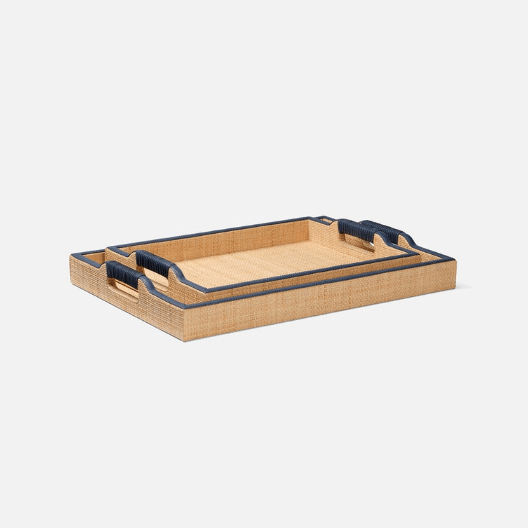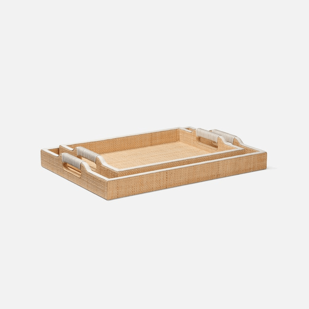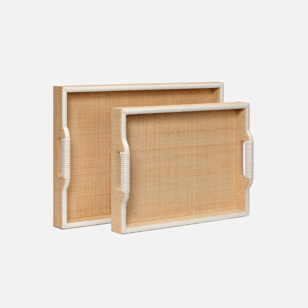 Constructed from tightly woven natural raffia and finished with a solid, bold border. Our Clearwater trays are perfect for organizing those must-haves within reach, or for stacking on top of one another as an artful, understated centerpiece.