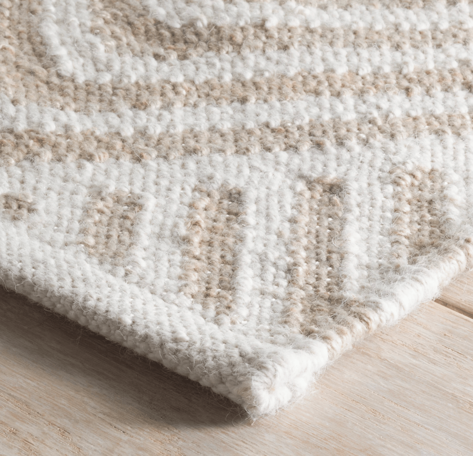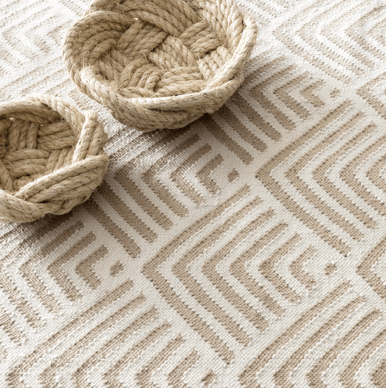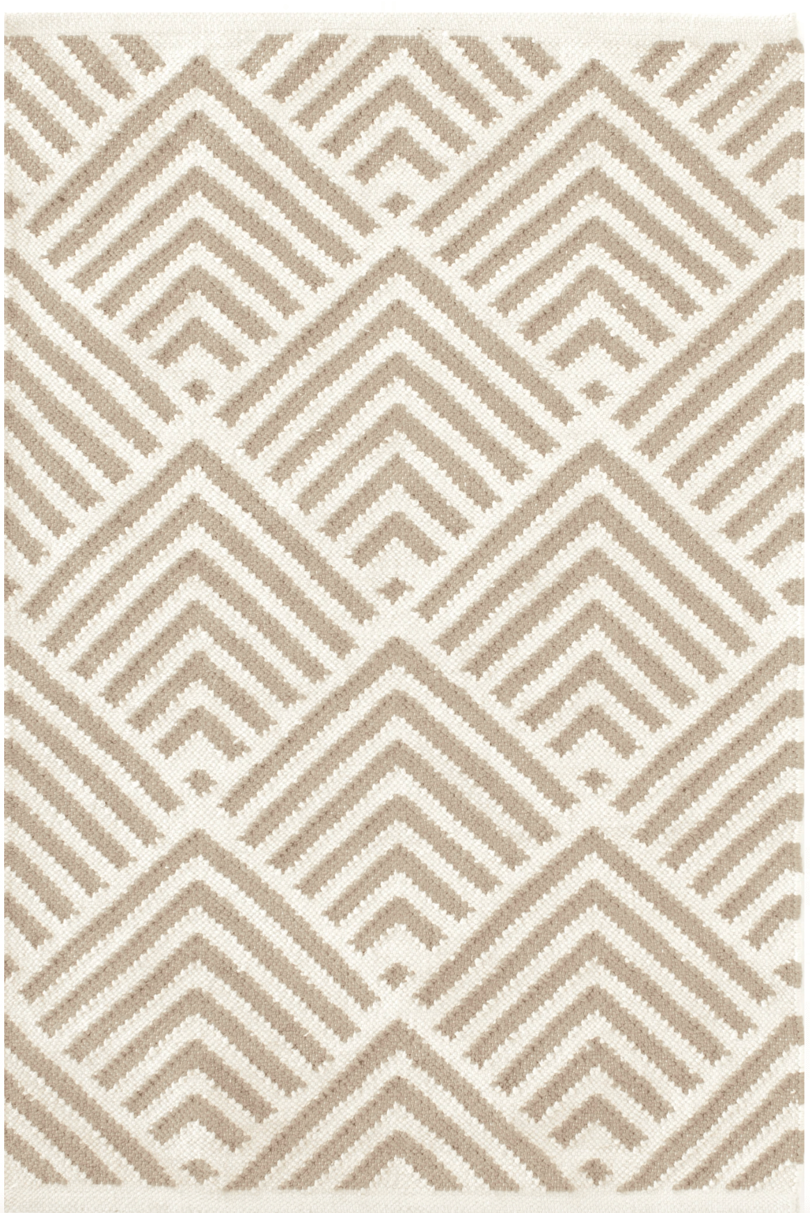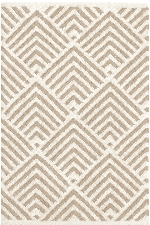 A traditional kilim weave gets the indoor/outdoor treatment in eco-friendly recycled materials and a woof-worthy graphic pattern in classic ivory and a single gorgeous color. Variations in color are expected. Just right for high-traffic areas and the porch or patio