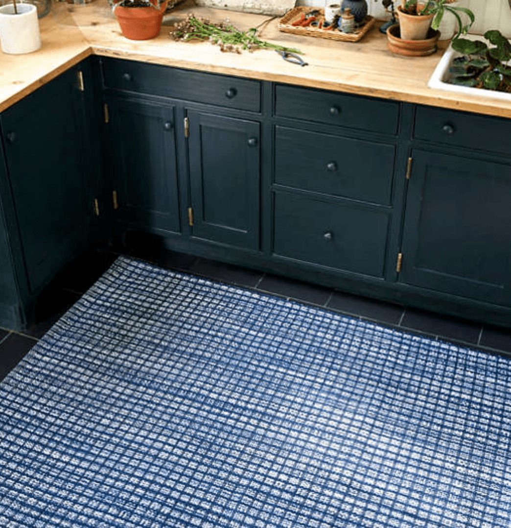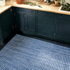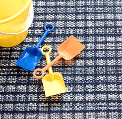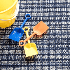 Inspired by a colorful knit throw, the Coco Blue indoor/outdoor area rug features a unique texture and mottled, knitted look produced by a mix of poly yarns that peek through from under a blue checkerboard pattern. Use it to create a cozy feel in high-traffic areas, without having to worry about cleanup! Add a rug pad to ensure your rug stays in place!