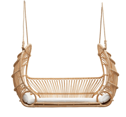 The Coconut Grove Hanging Day Bed is skillfully crafted from pole rattan with an accompanied off-white cushion nestled inside. This hanging bed is sure to be the talking point of the house. Perfect for bedrooms, living areas, covered/enclosed porch.