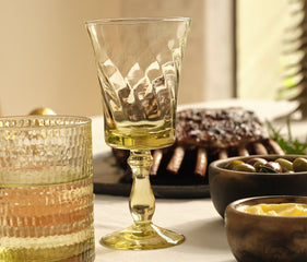 The spiral pattern of this tapered wine glass gives the Colette's hand blown glass an optical depth. Serve up a pre-dinner aperitif or a post-feast old-fashioned; the heavier lipped bottom ensures a hand feel as carefully considered as the drink it was made to hold.