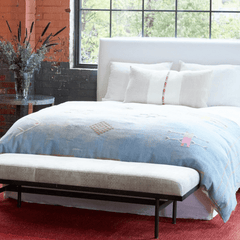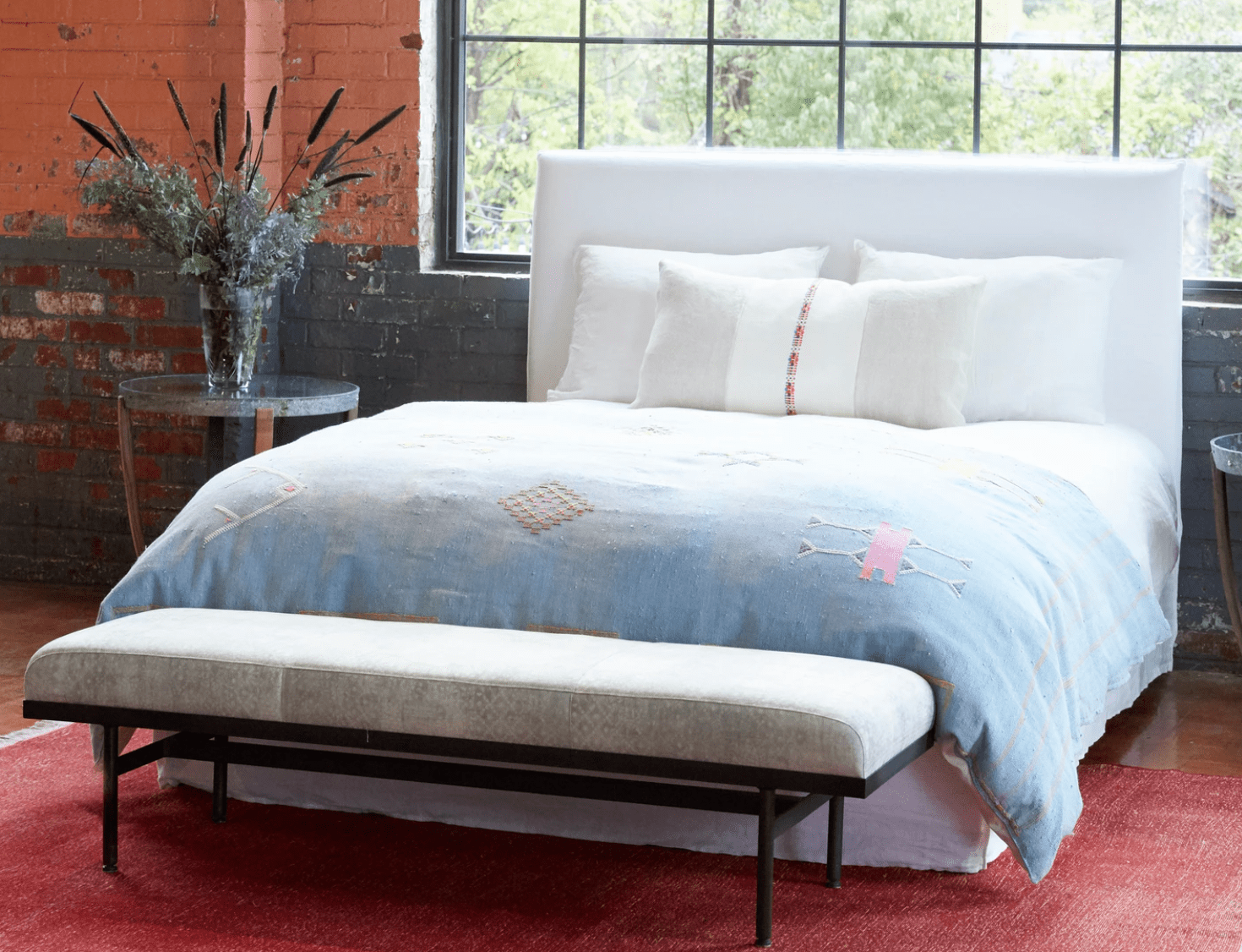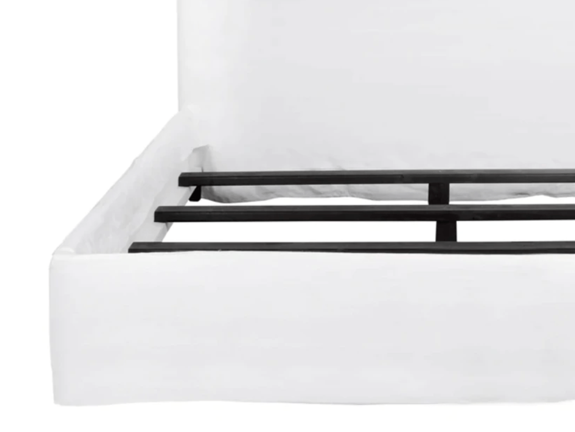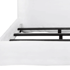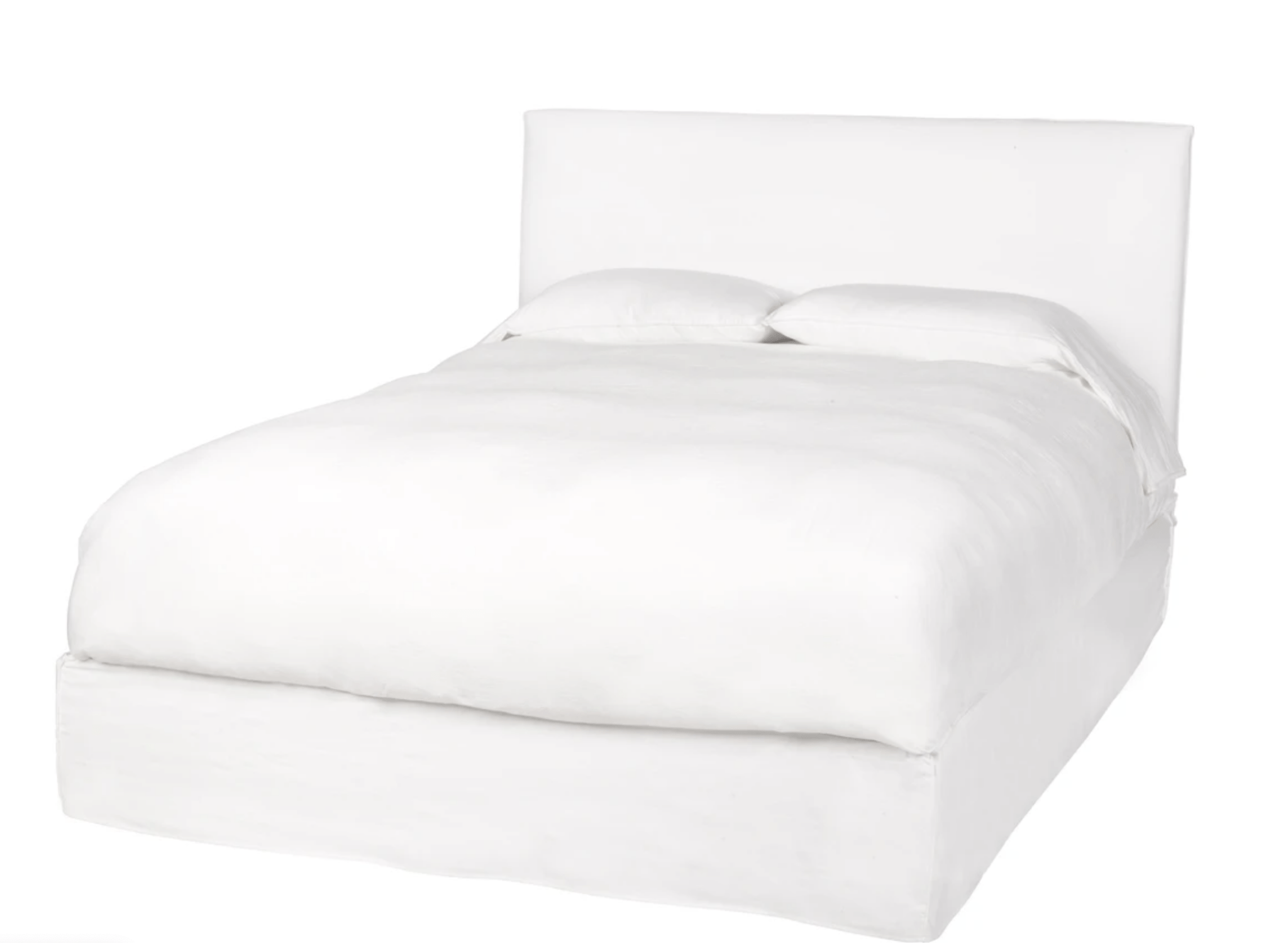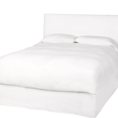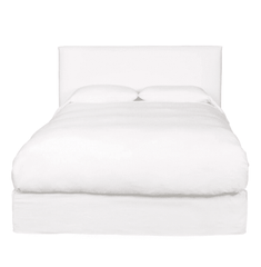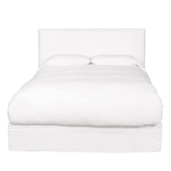 The Croatia Slipcovered Bed showcases clean lines with a luxurious, plush headboard covered in wide variety of amazing fabrics. Available in four sizes and many fabrics, this slipcovered piece addd to the bedroom a soft, clean look. The Croatia works with any night tables, dressers and more without having a "set". Image shows slipcovered in Logan White.